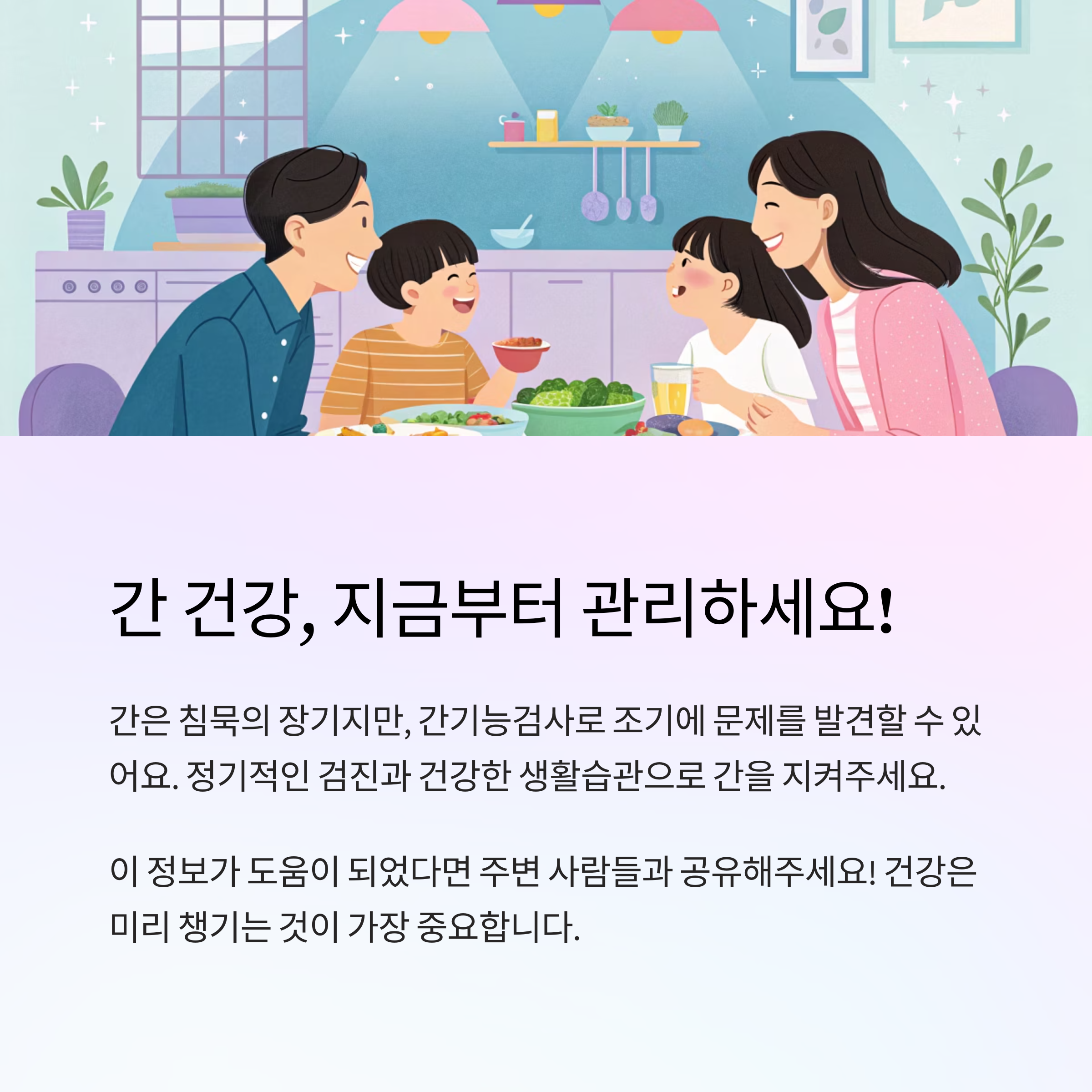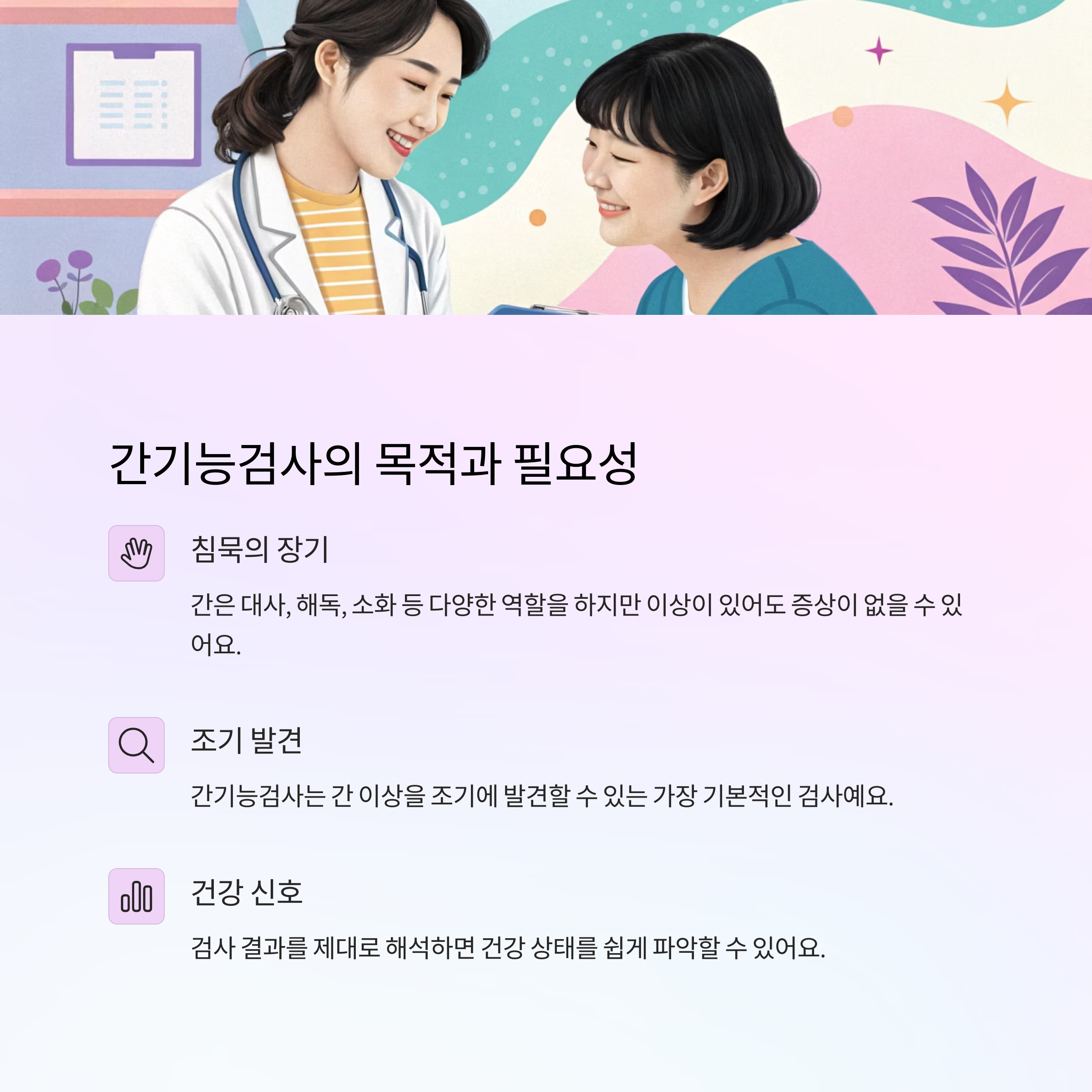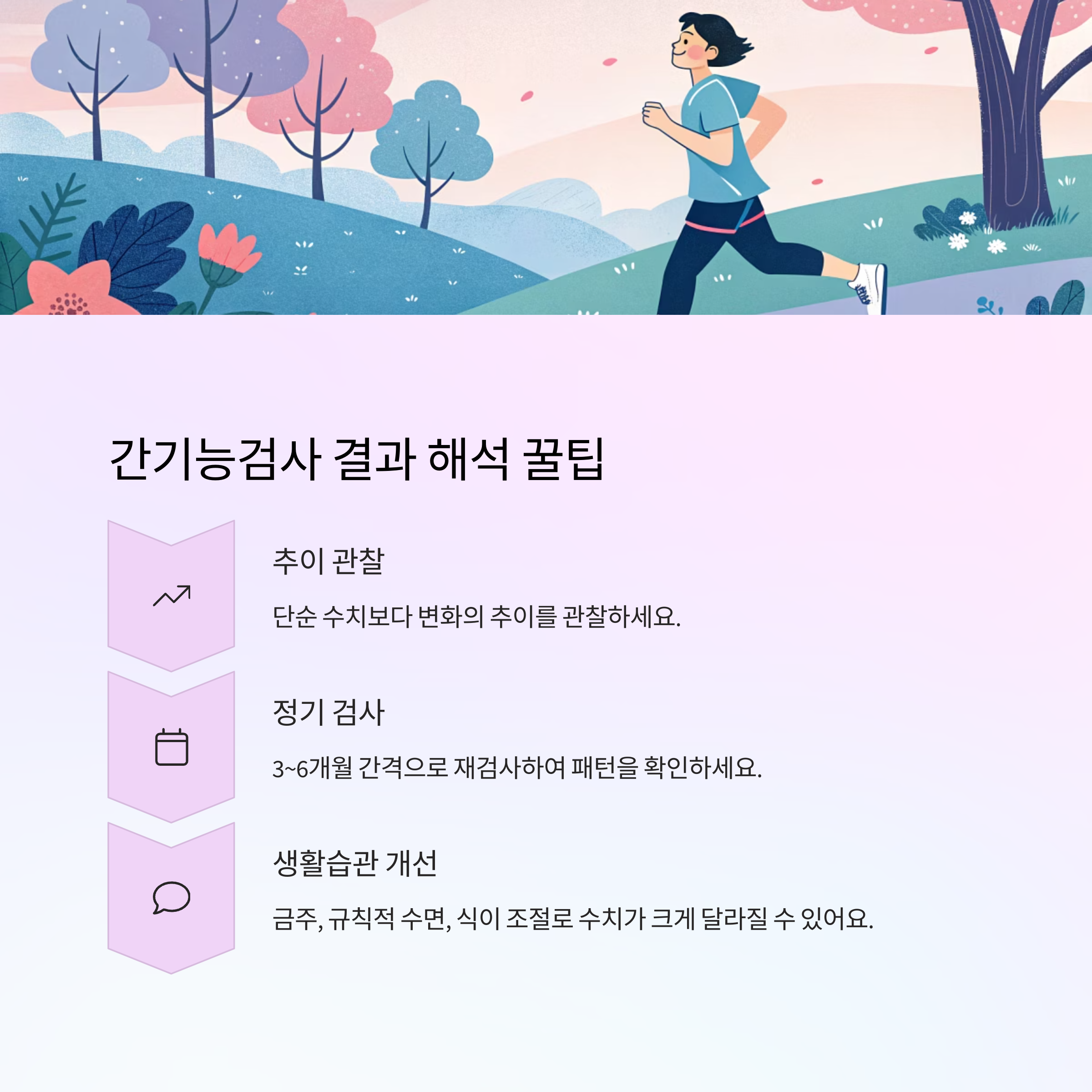 검사 결과는 숫자만 있는 게 아니라, 우리의 삶이 반영된 이야기예요. 평소 나의 습관이 간에 어떤 영향을 주는지 다시 생각해보는 계기가 되면 좋겠어요. 💛
