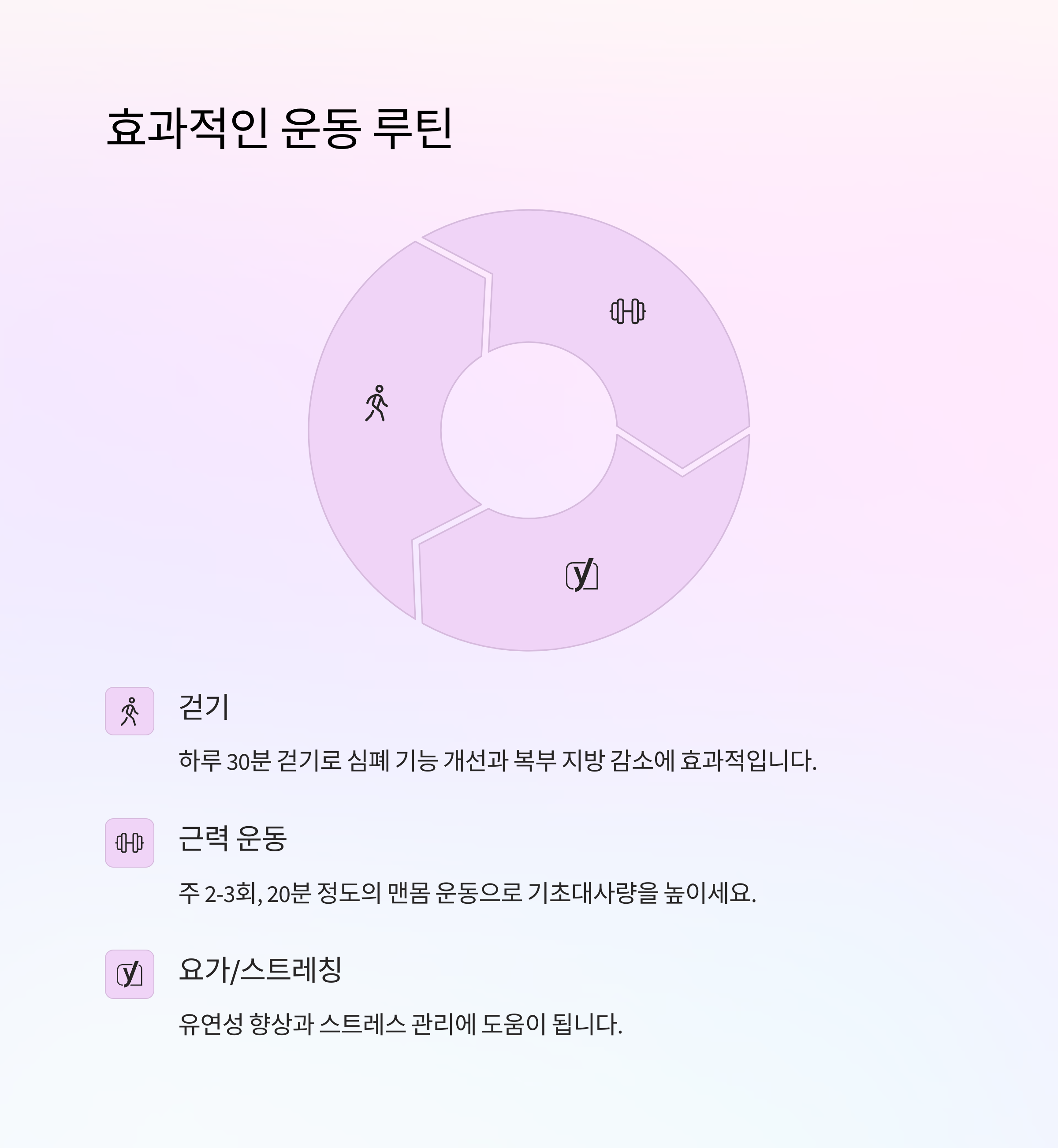 | 지속 가능한 운동 | 걷기, 요가, 홈트 | 근력 유지, 활력 회복 |