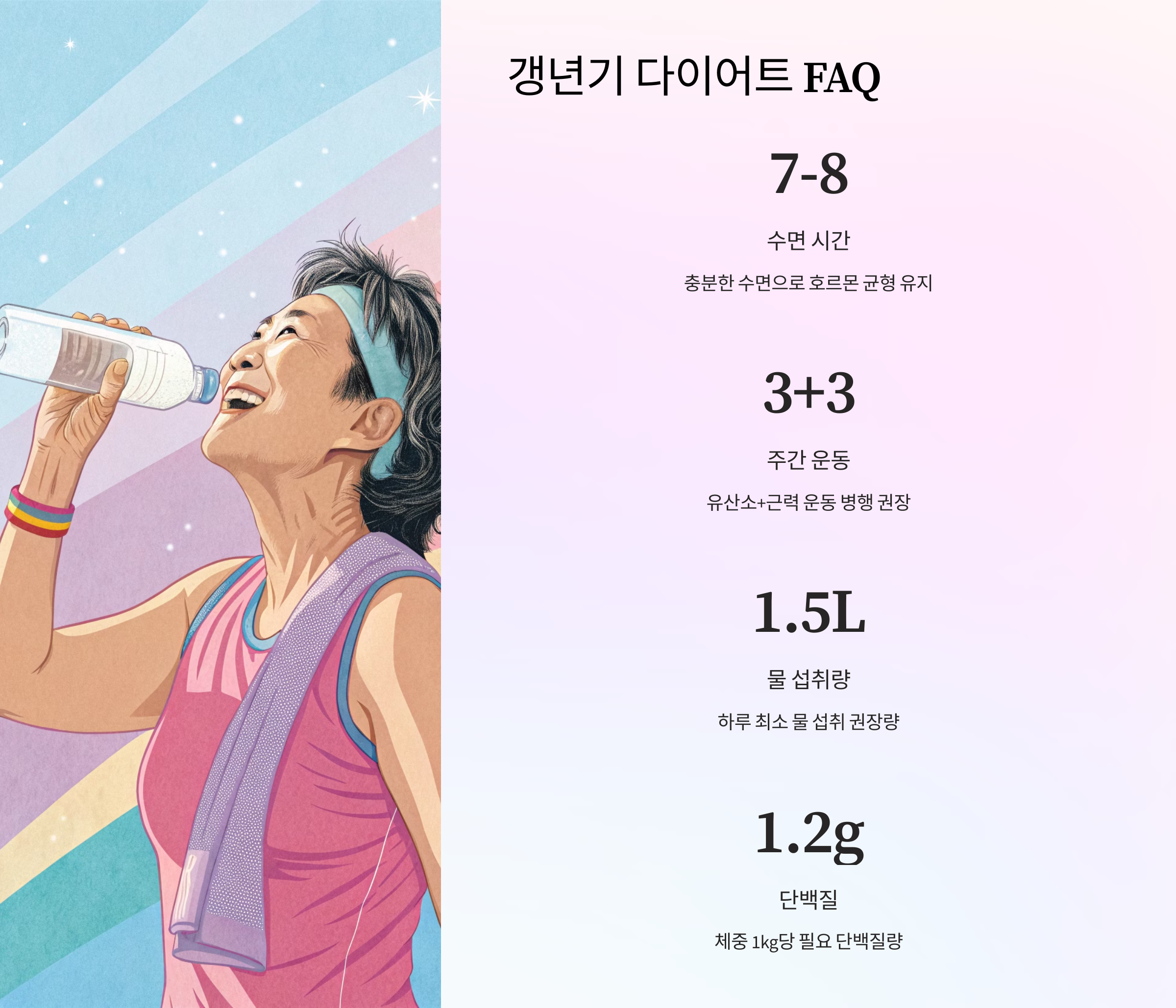 이 원칙만 잘 지켜도 갱년기 다이어트는 절반은 성공한 거예요. 몸이 보내는 신호를 무시하지 말고, 부드럽고 꾸준하게 조절해보는 게 가장 현명한 방법이에요. 🧡