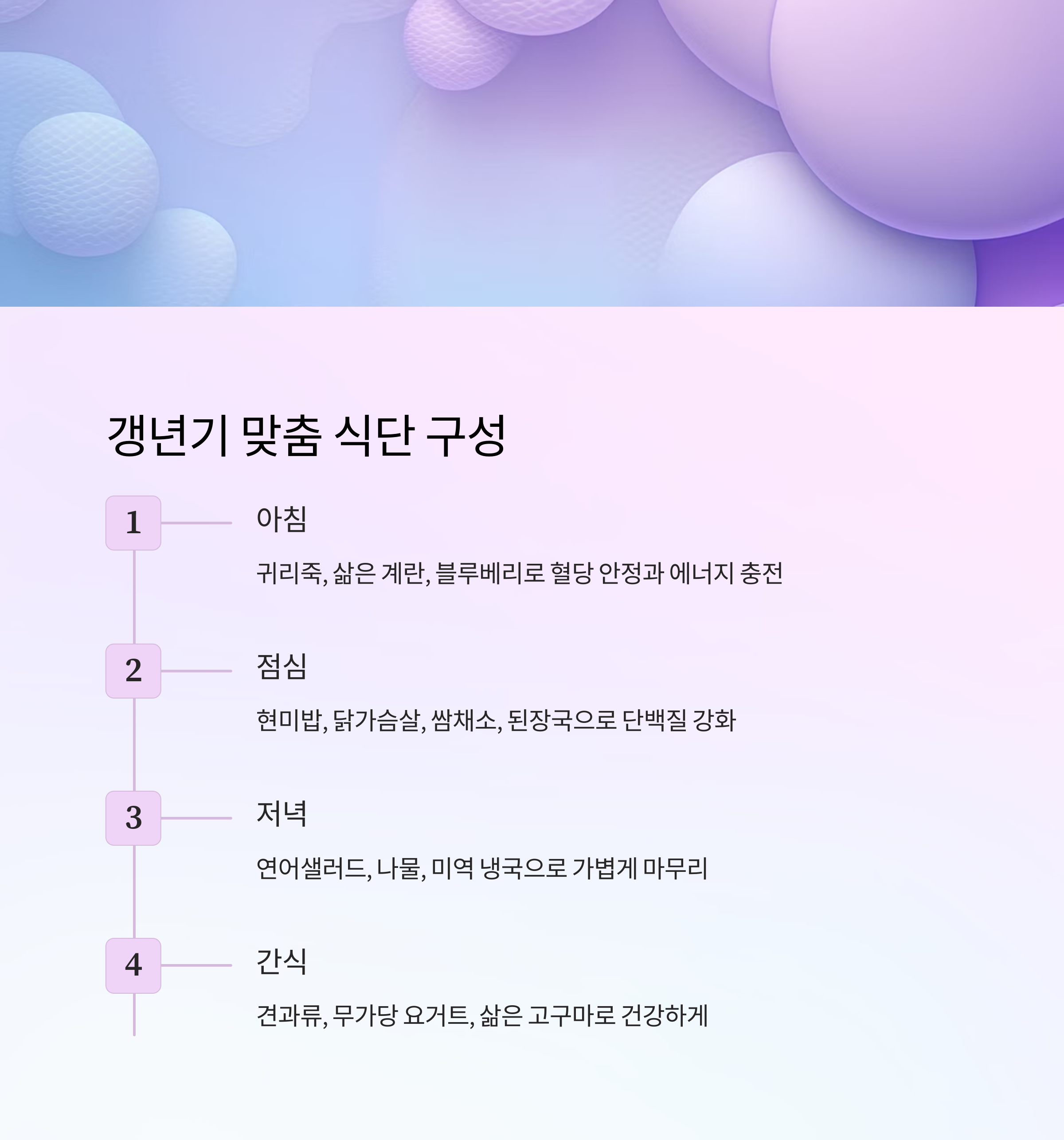 🥗 갱년기 식단 예시표 (아침~저녁)