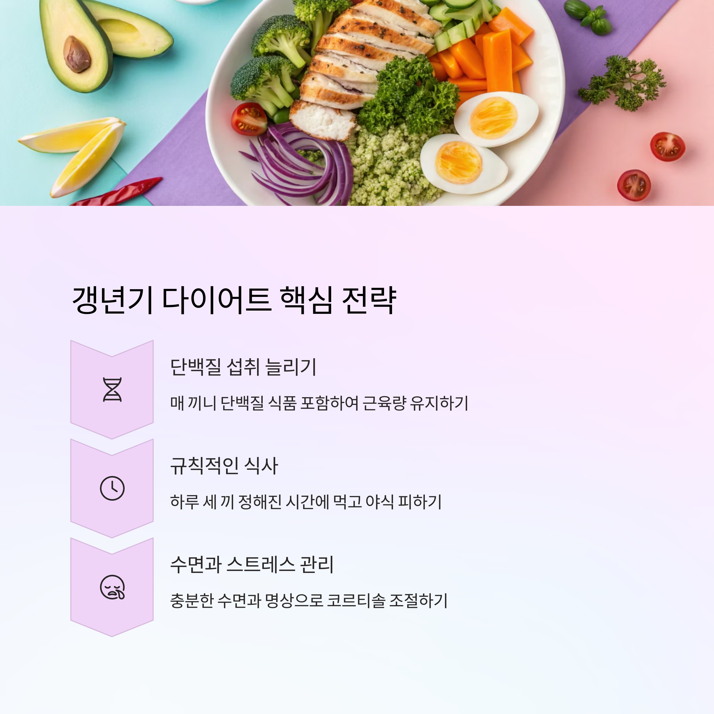 📌 갱년기 맞춤 다이어트 핵심 요약표