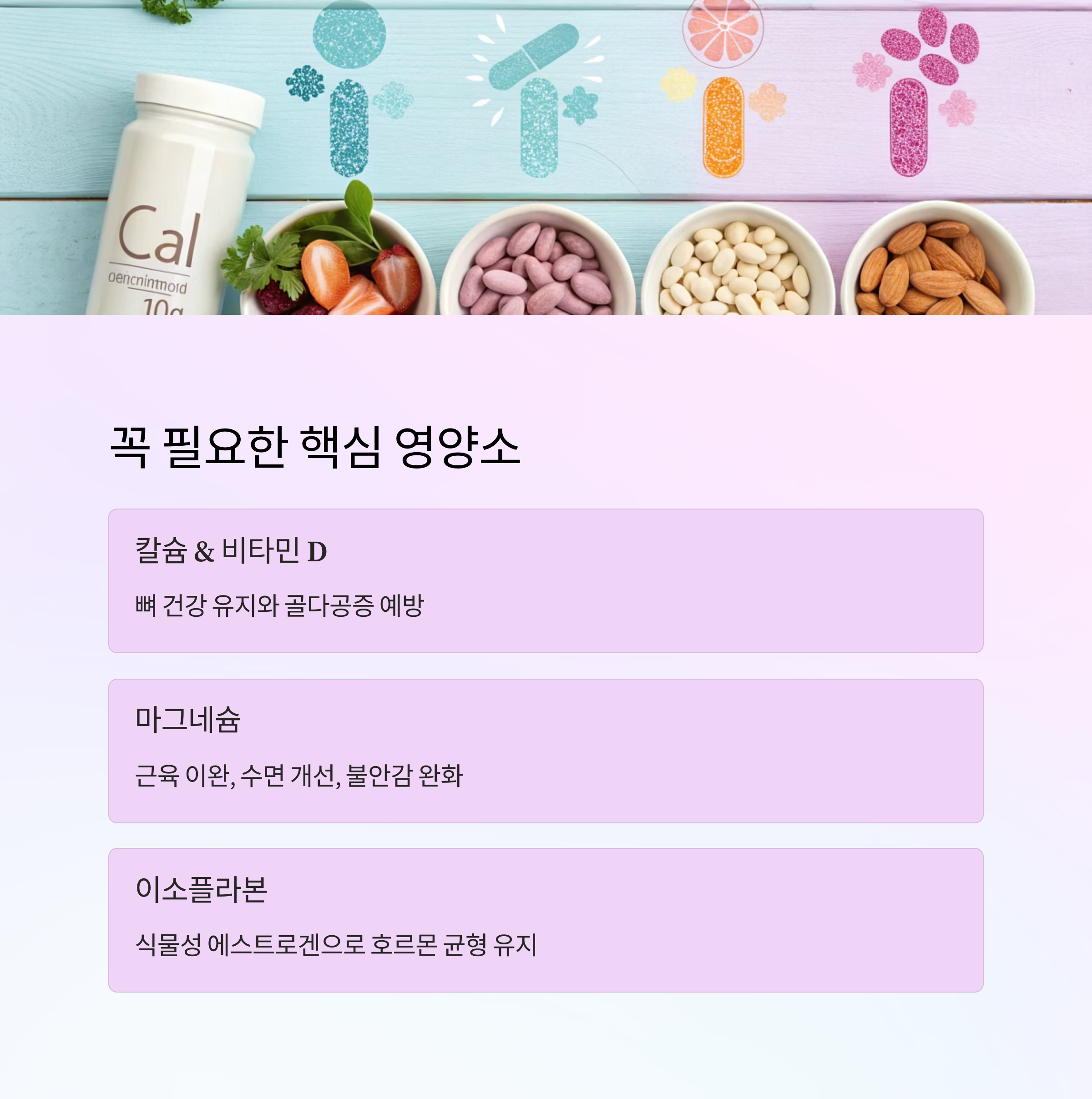 🌿 갱년기 여성에게 추천되는 핵심 영양소 표