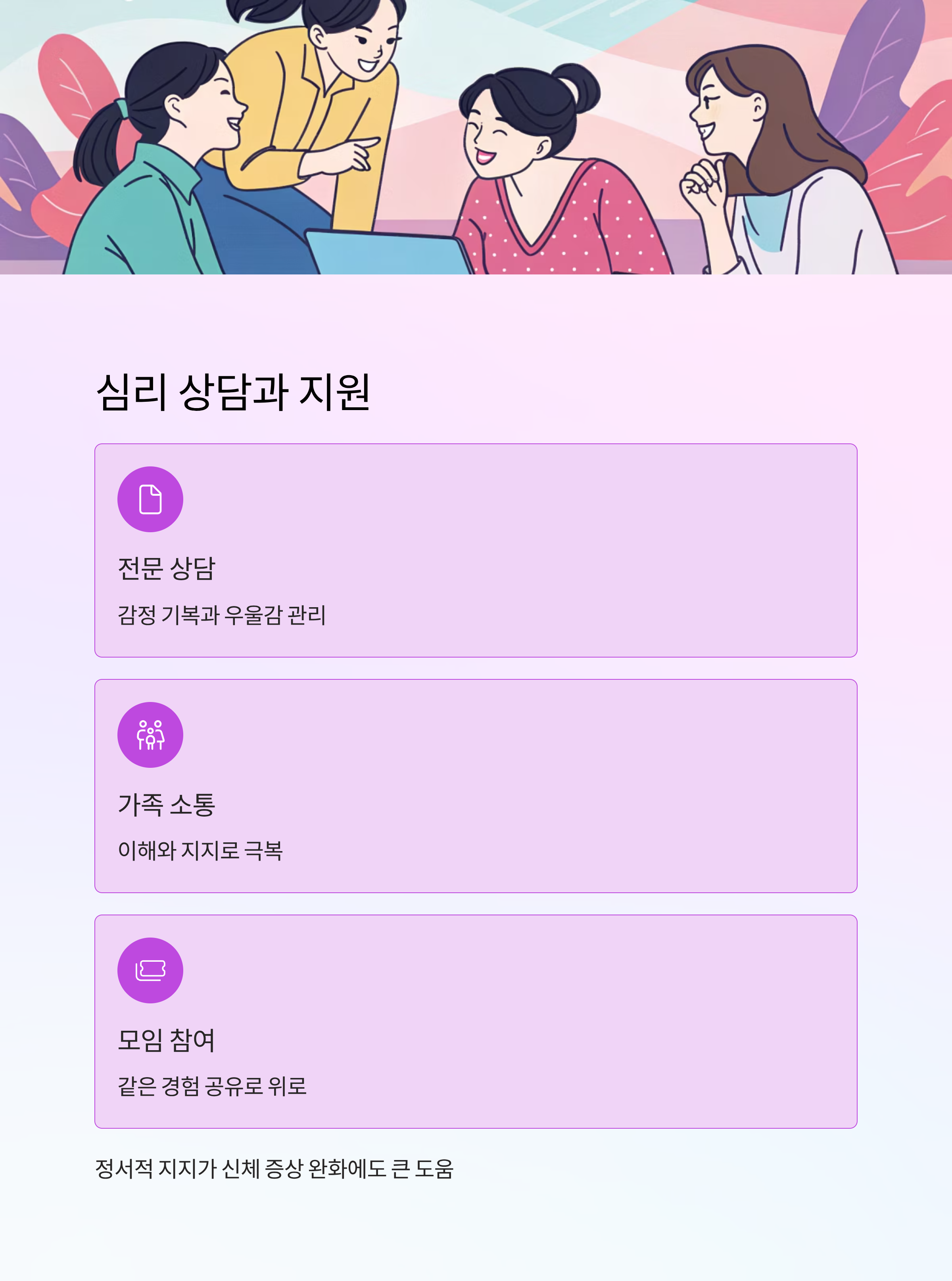 특히 정서적 지지와 사회적 연결망이 잘 구축되면, 신체 증상도 훨씬 수월하게 관리할 수 있다는 보고가 많아요. 약물 요법 못지않게 중요한 부분이랍니다.