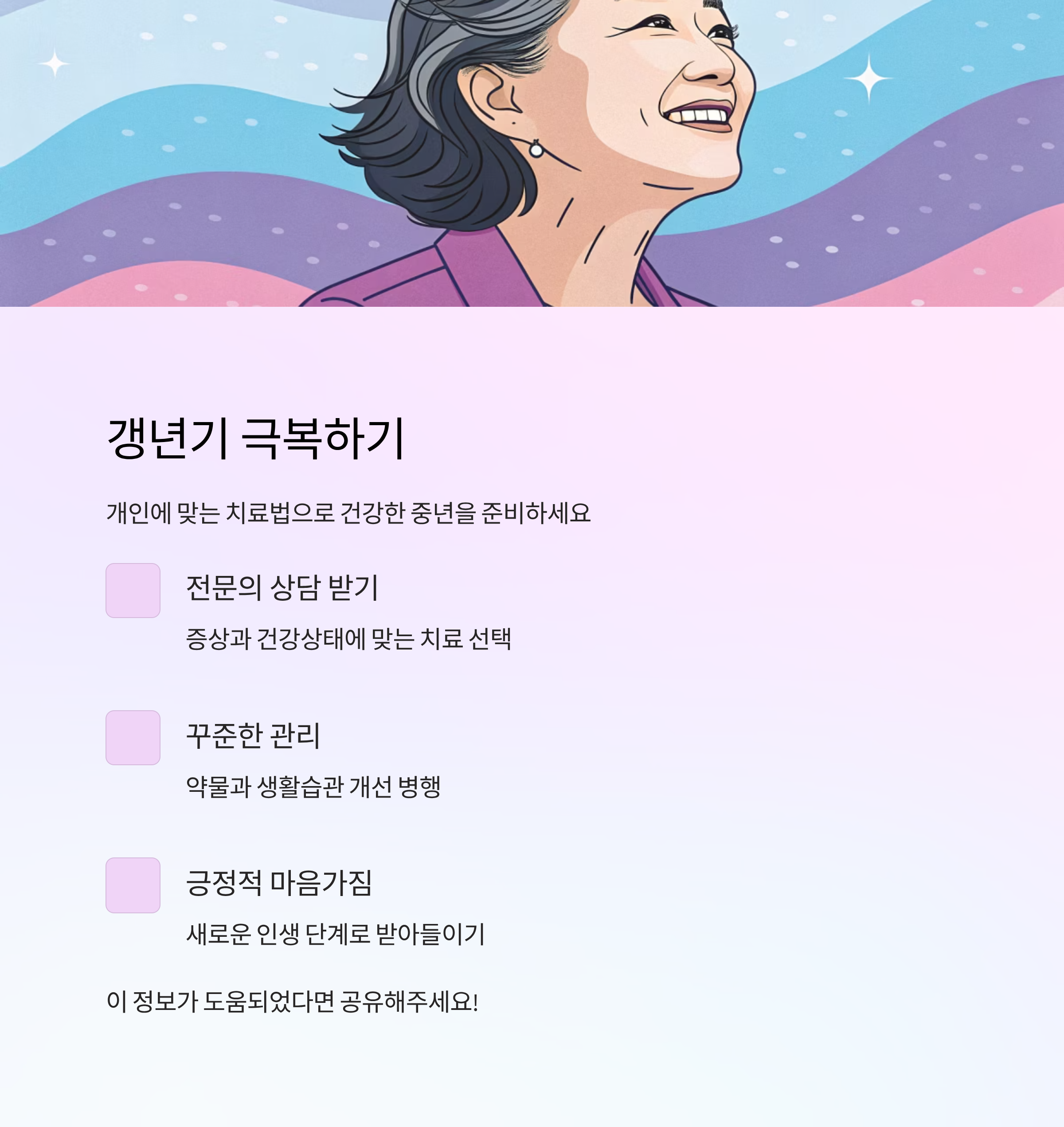 단순히 신체적인 변화뿐만 아니라 정신적, 사회적 영향도 커서 관리가 꼭 필요해요. 제가 생각했을 때 갱년기를 겪는 분들은 단순한 치료보다는 전체적인 삶의 균형을 맞추는 접근이 더 효과적이에요.