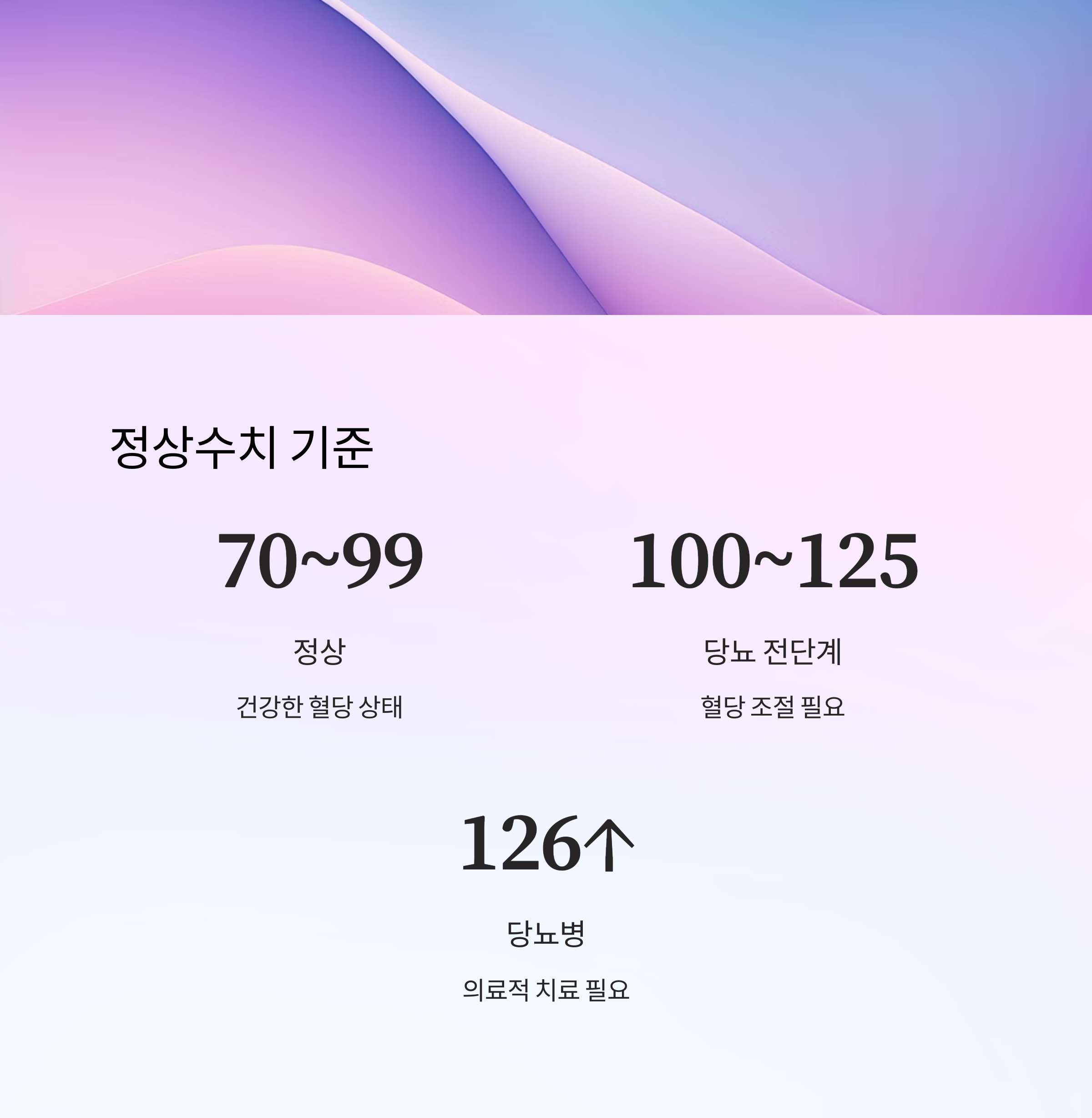 | 공복혈당장애 (당뇨 전단계) | 100~125 | 혈당 조절 필요 |