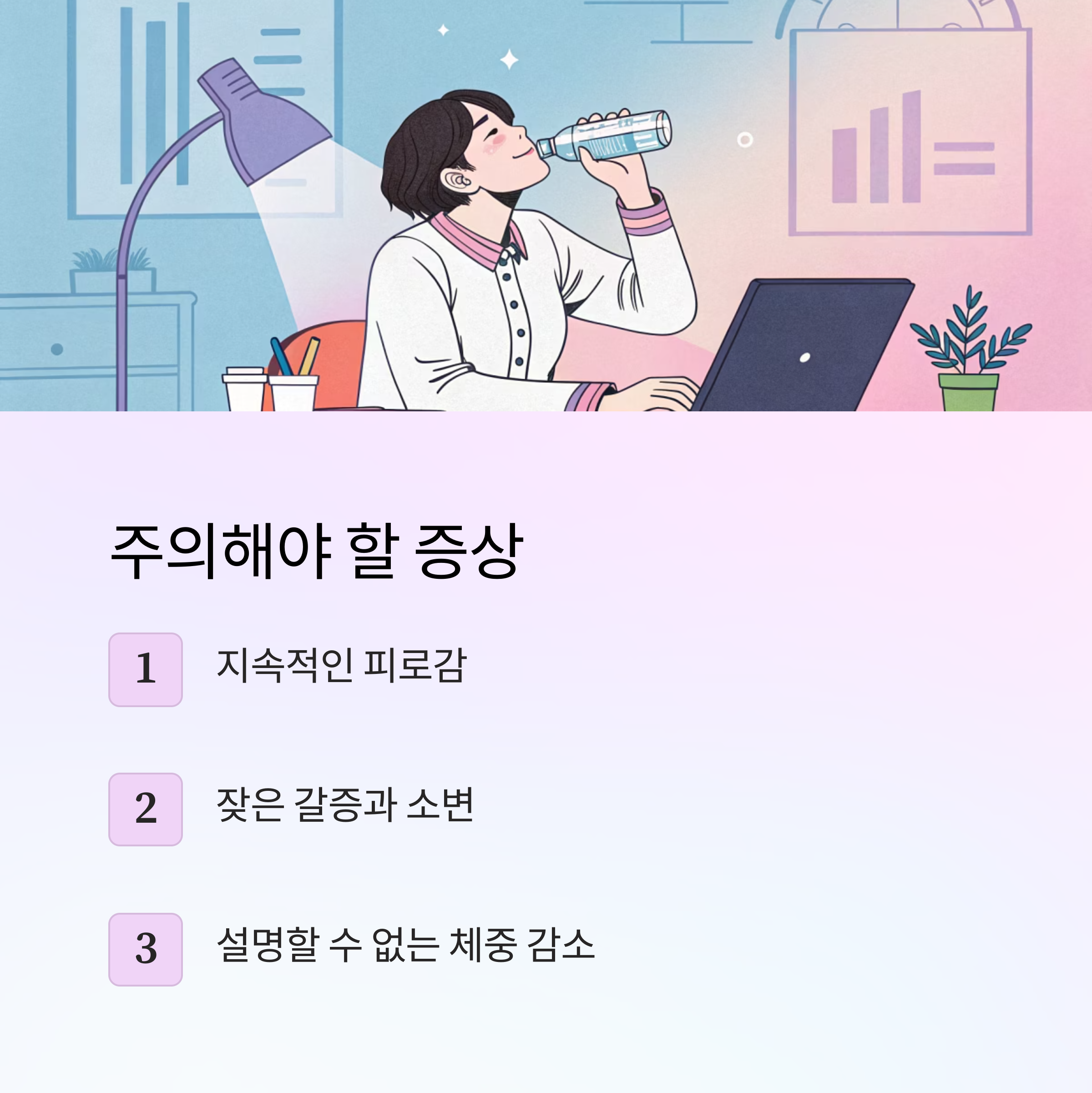 공복혈당이 높아지면 피로감, 잦은 갈증, 소변 증가 같은 증상이 나타날 수 있어요. 장기적으로는 심혈관 질환, 뇌졸중, 신장병 등의 위험이 커지게 되죠. 그래서 사전에 예방하고 조절하는 것이 정말 중요하답니다.