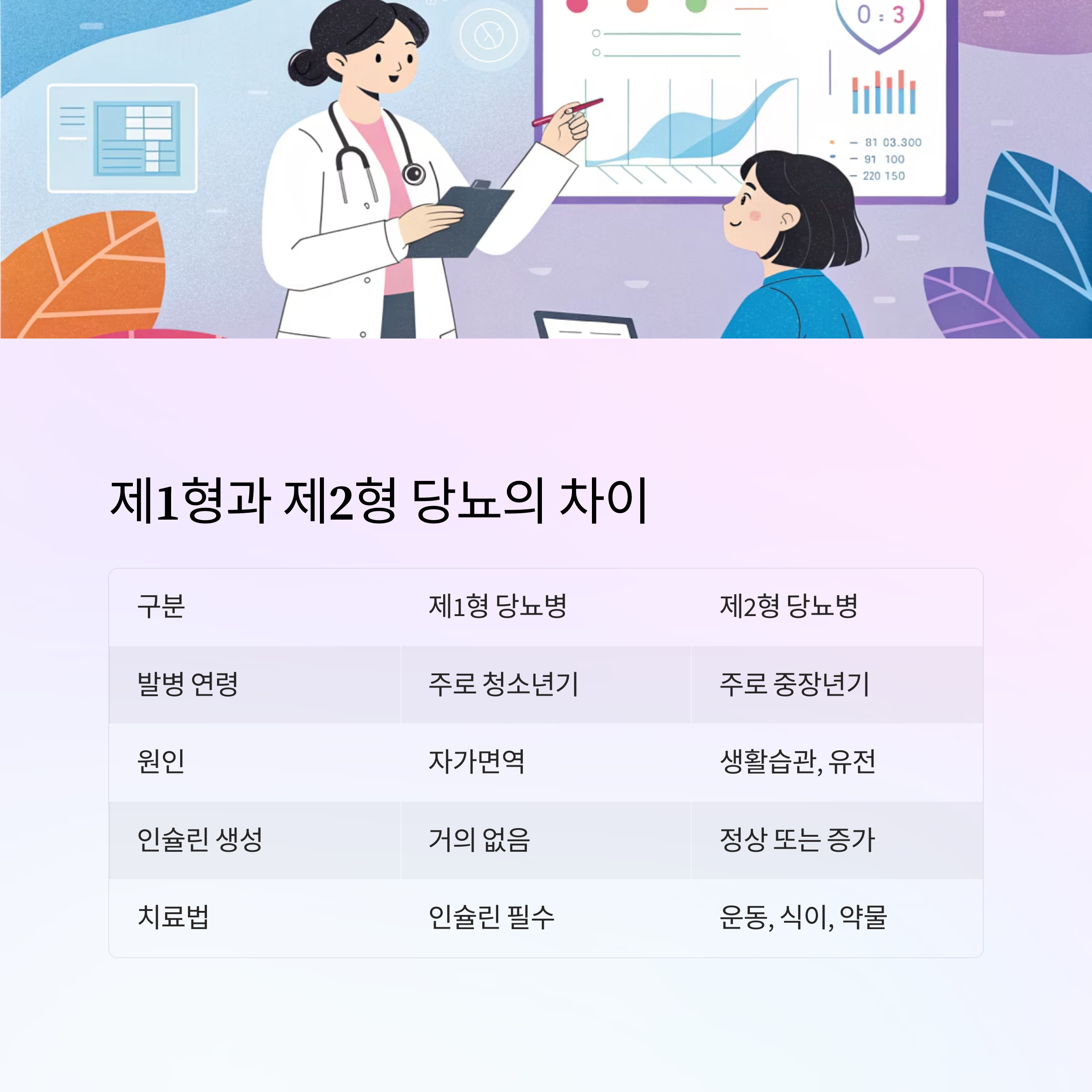⚖️ 제1형 vs 제2형 당뇨 비교표