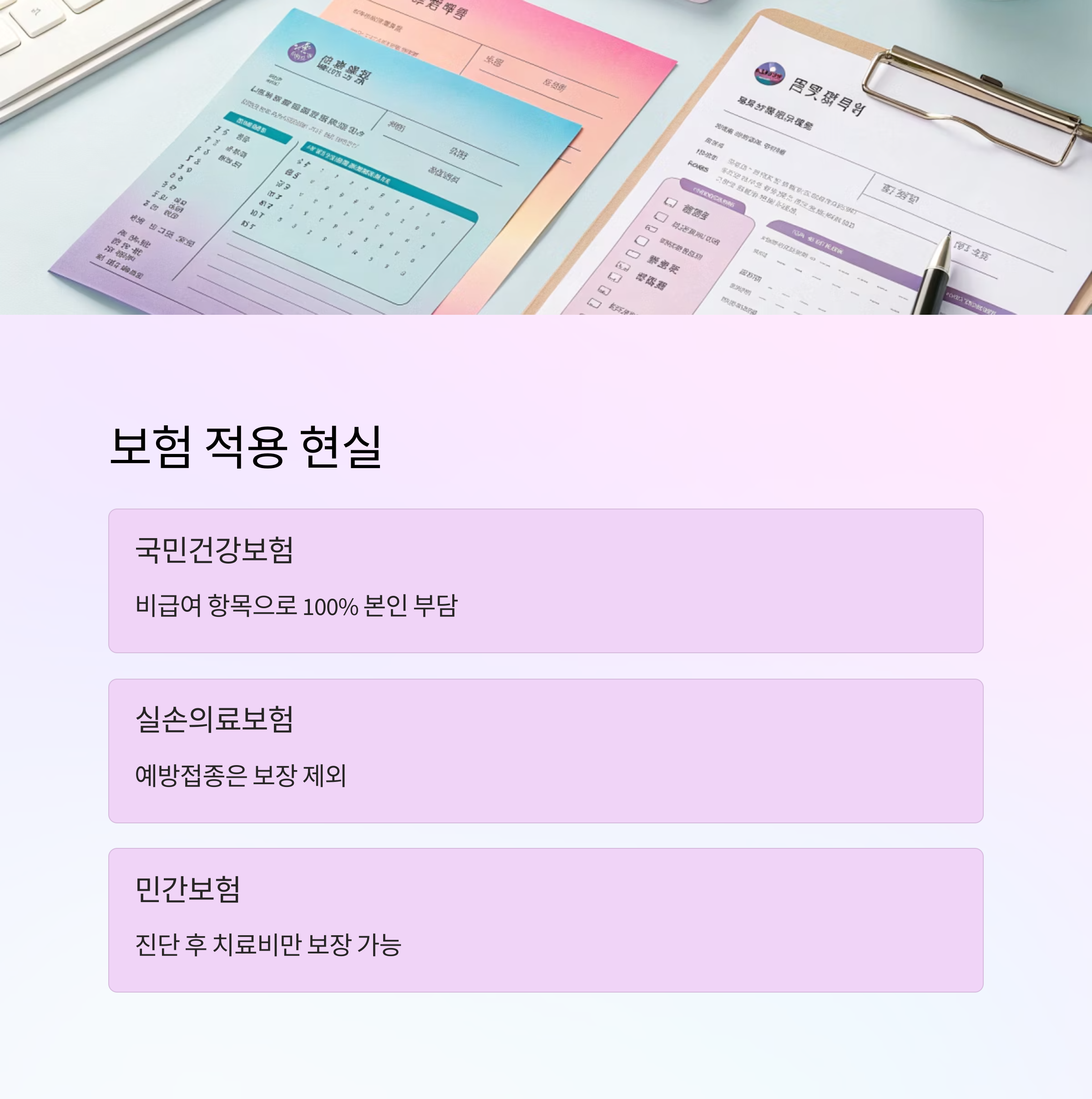 보험을 통한 예방접종 비용 보장은 흔하지 않지만, 일부 특별한 경우엔 가능성이 있으니 '내가 가입한 보험'을 한 번쯤 다시 살펴보는 게 중요해요. 보험도 전략이에요! 😉