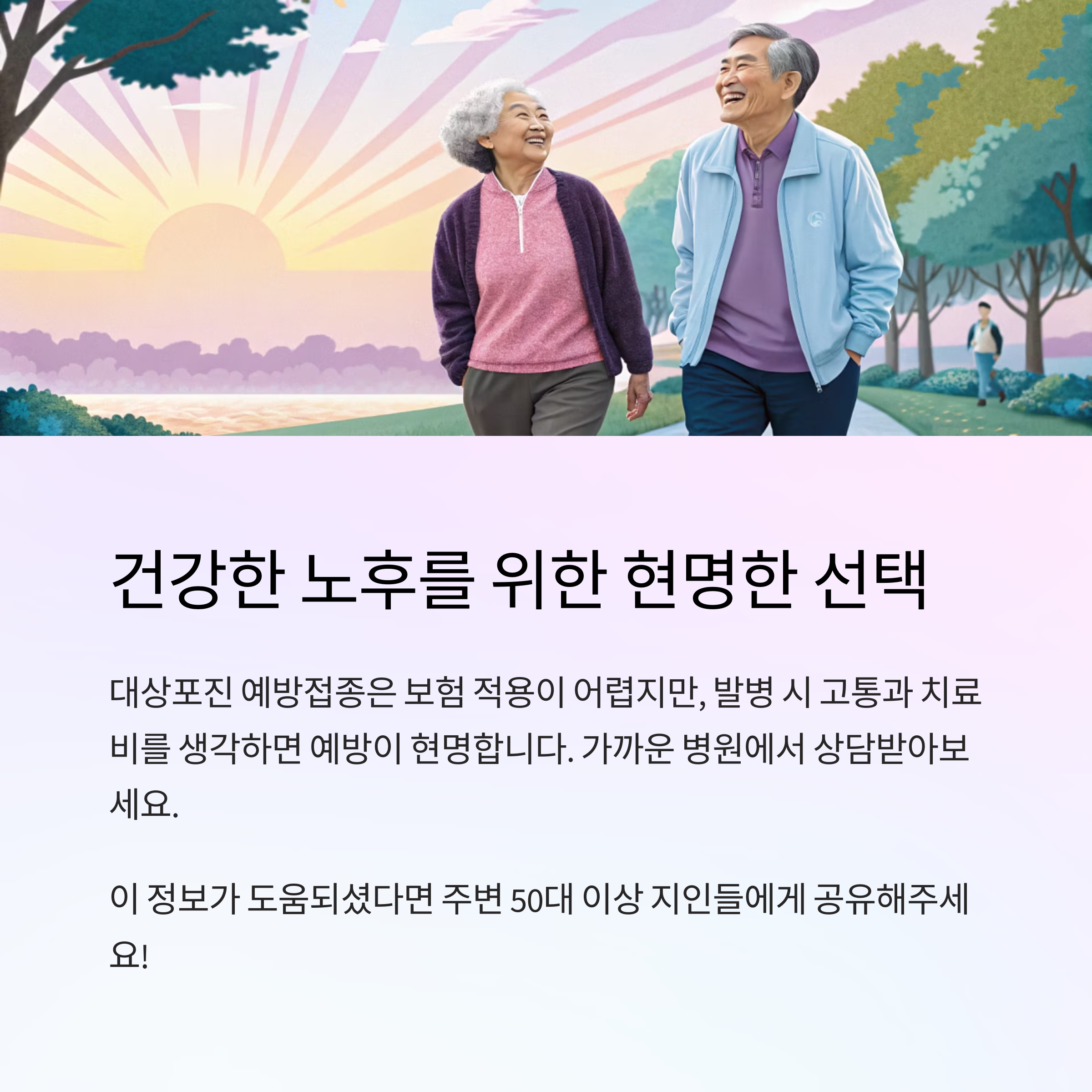 접종 비용이 높은 만큼, 접종을 고민하는 분들이 많아요. 하지만 한 번 대상포진을 앓고 나면 치료비뿐 아니라 생활 불편도 크기 때문에 예방의 가치가 크다고 할 수 있어요.