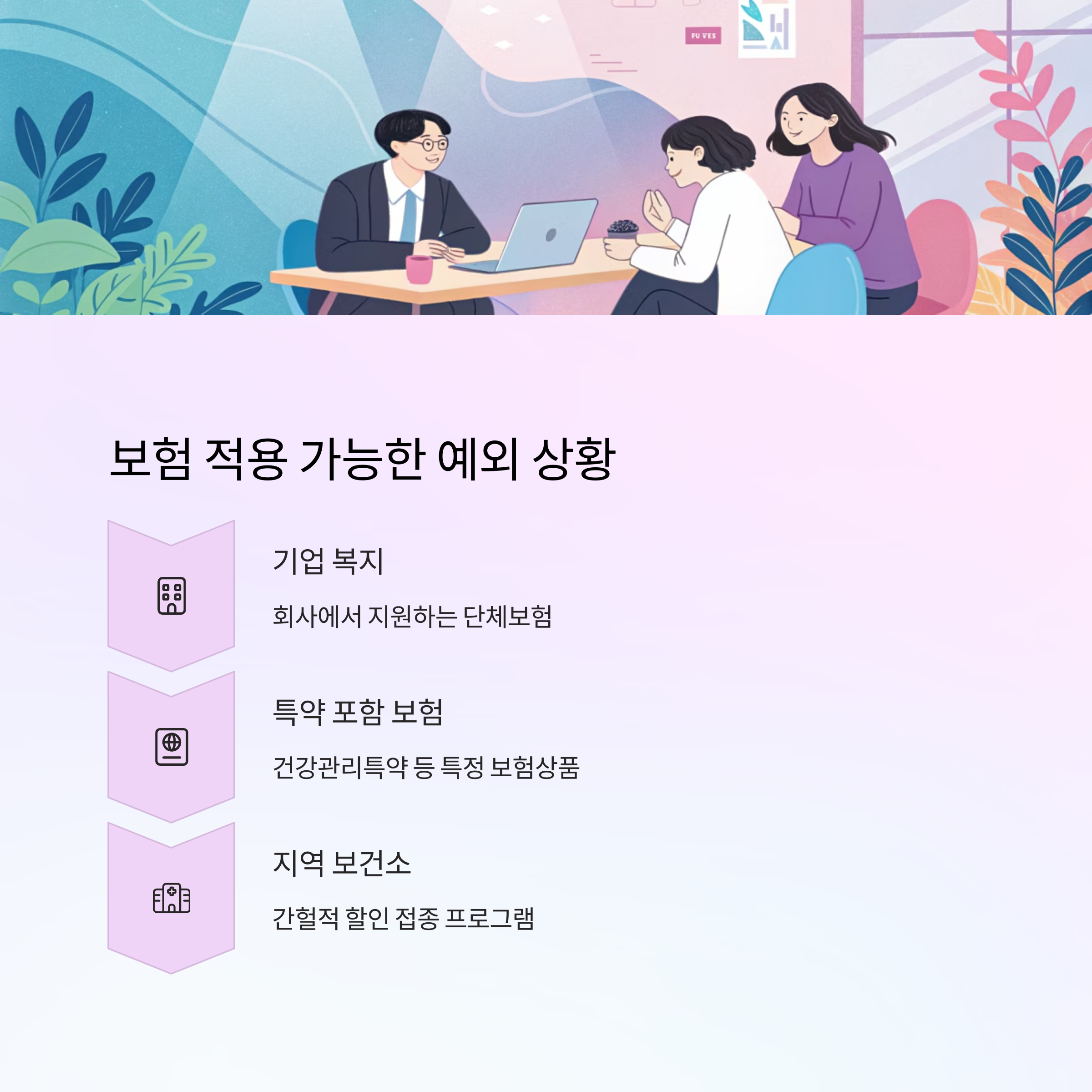 앞서 언급했듯이, 예방접종 자체는 대부분 보험 적용이 안 되지만 예외적인 경우도 존재해요. 바로 '회사에서 지원하는 단체보험'이나 '특정 특약을 포함한 보험'의 경우예요.