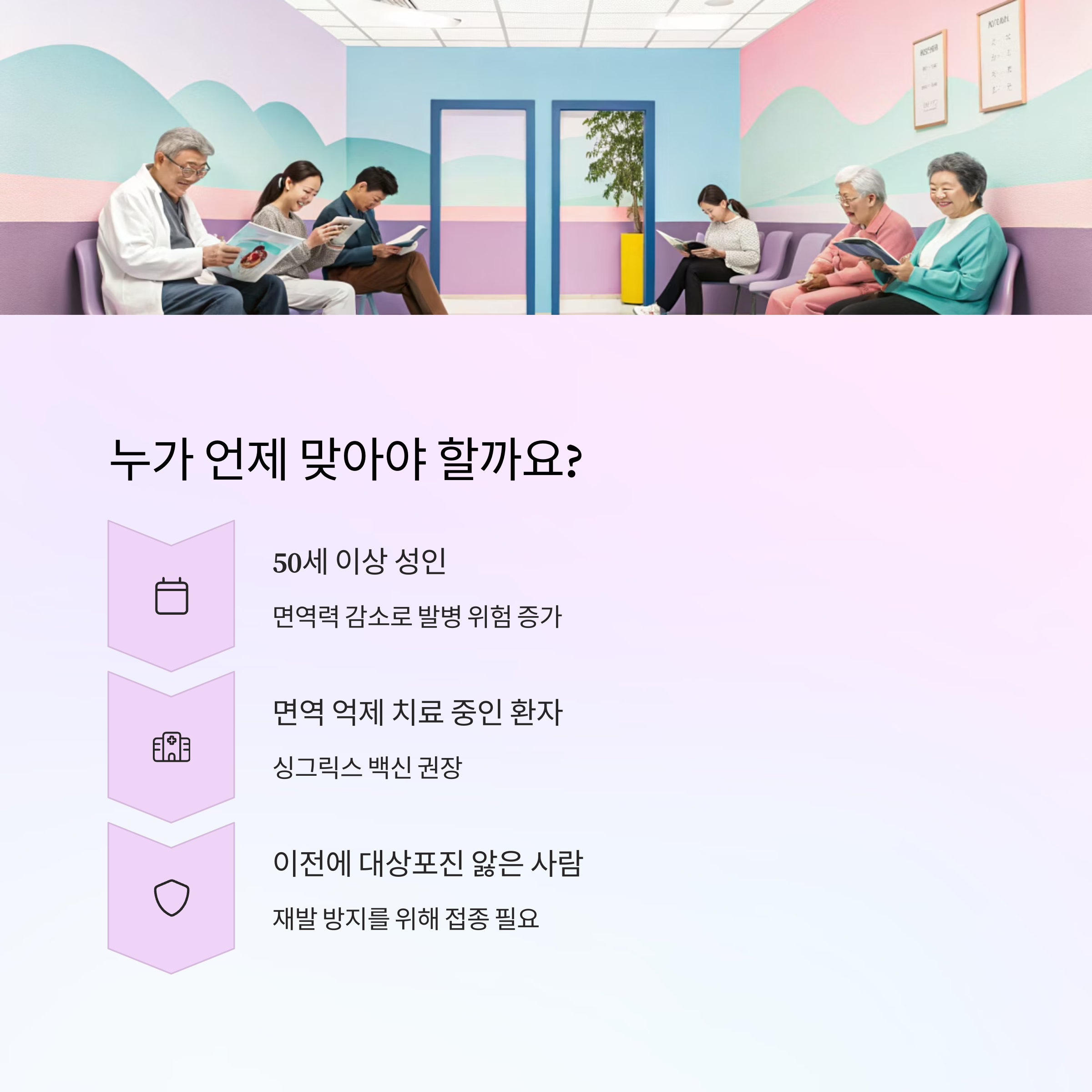 | 50세 이상 일반 성인 | 싱그릭스 | 면역력 감소 대비 |