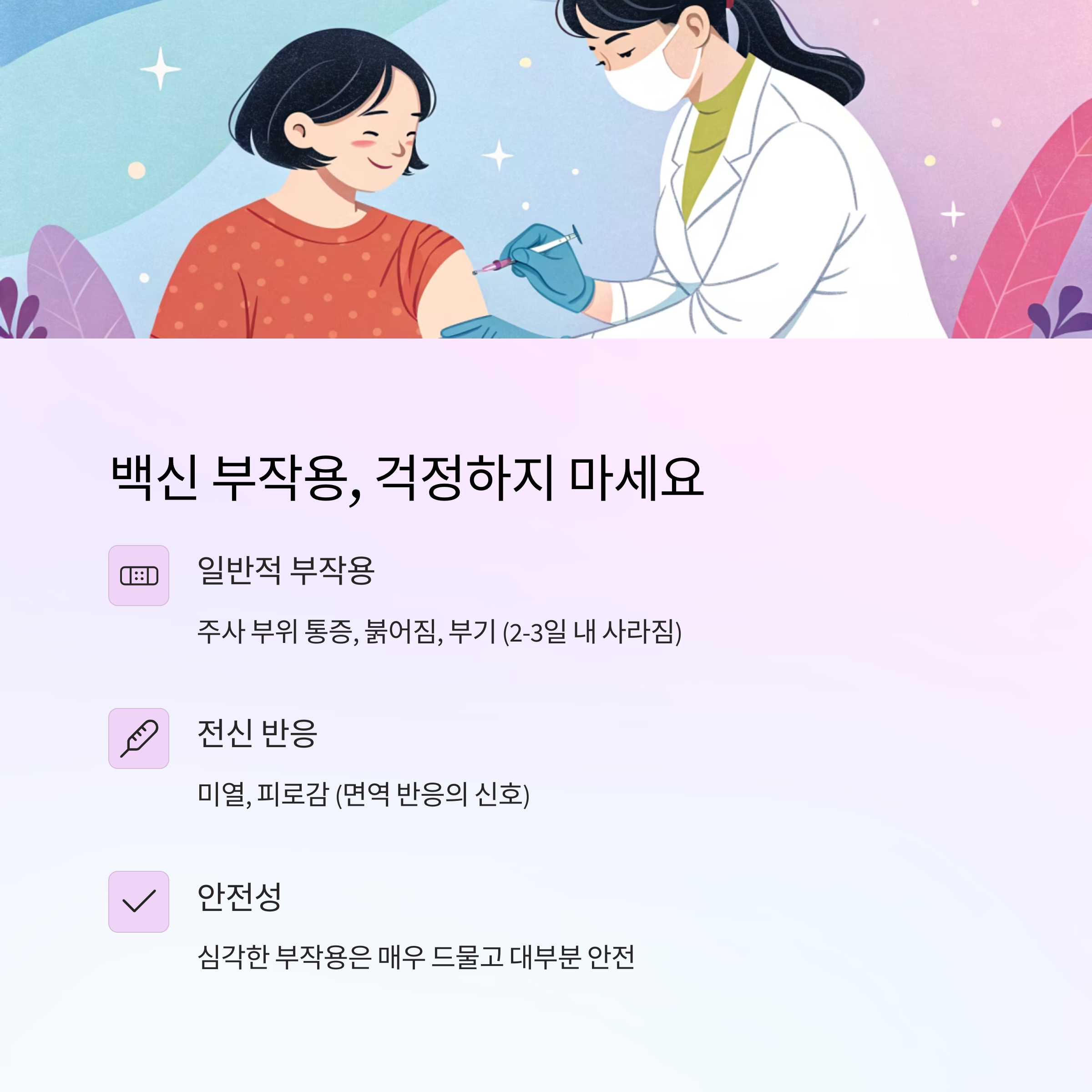 부작용이 걱정되더라도, 대상포진이 주는 통증과 후유증을 생각하면 백신을 맞는 것이 훨씬 이득이에요. 의사와 충분한 상담을 통해 본인에게 맞는 백신을 안전하게 접종하는 것이 가장 좋은 선택이에요.