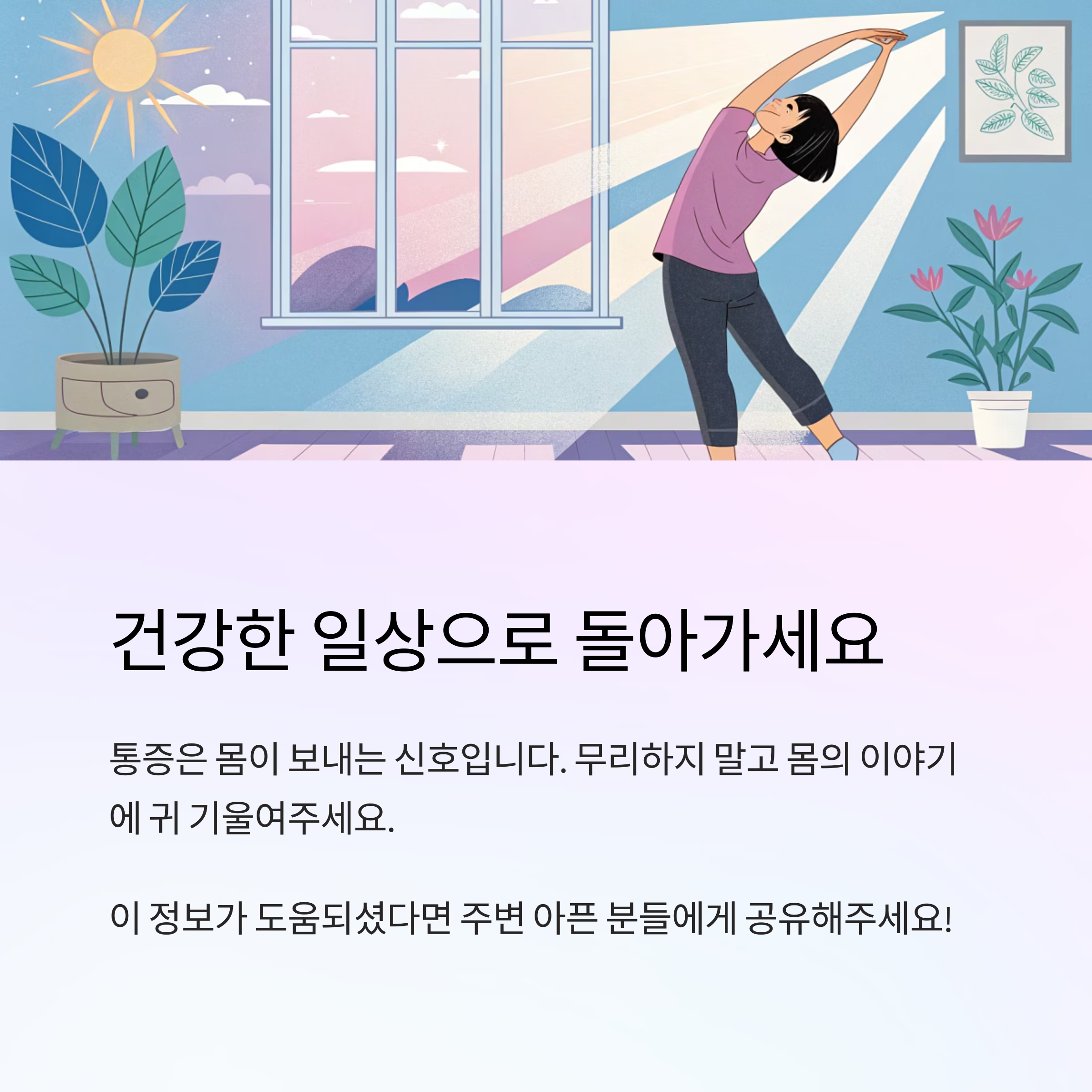이처럼 작은 자세 하나가 통증을 줄이는 열쇠가 될 수 있어요. 과하지 않게, 몸이 보내는 신호를 귀 기울이며 실천해보세요 😊