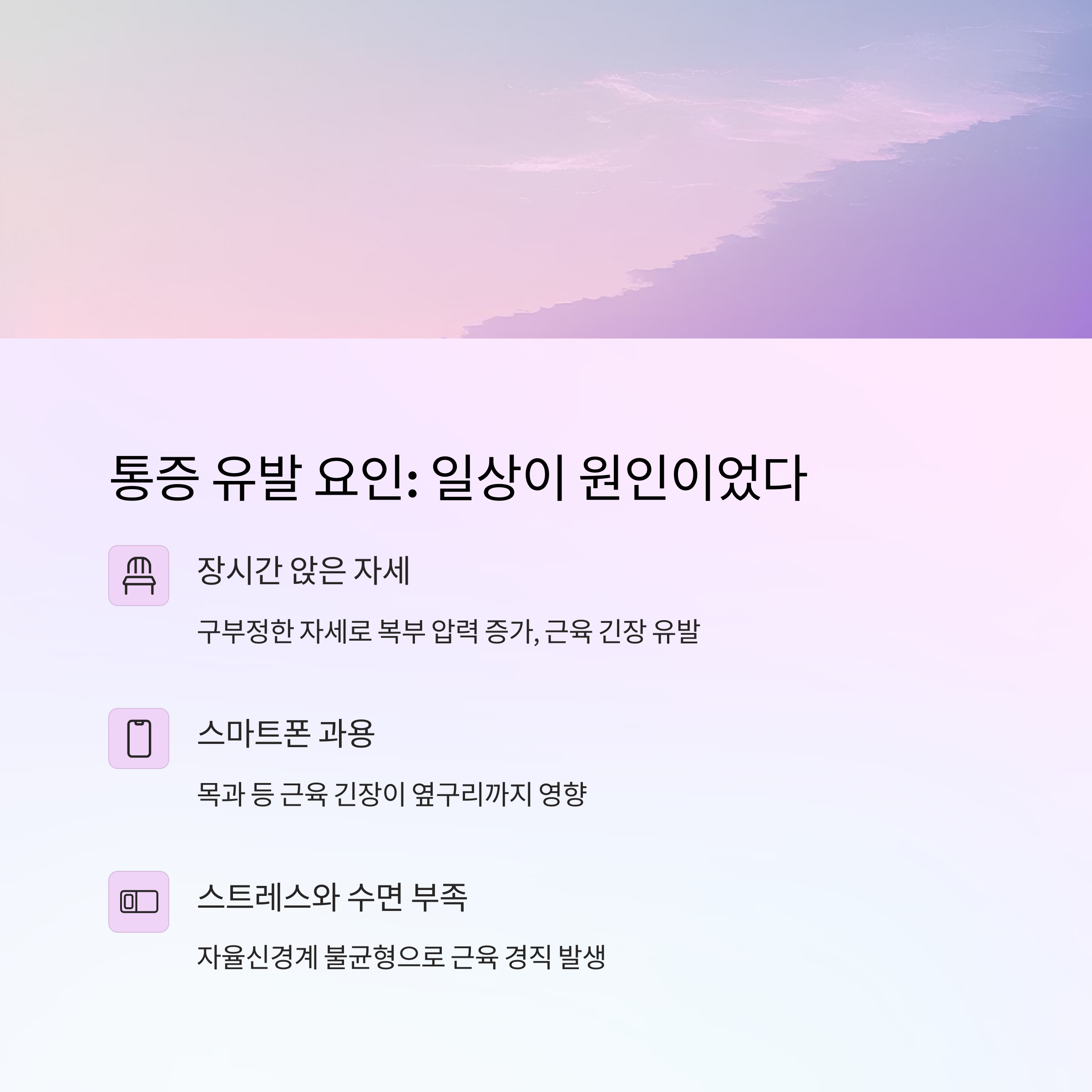 특히 스트레스나 수면 부족도 근육 긴장을 가중시켜요. 자율신경계의 불균형으로 인해 등 근육이 자주 경직되고, 이런 상태가 반복되면 옆구리 쪽까지 통증이 번지게 되죠.