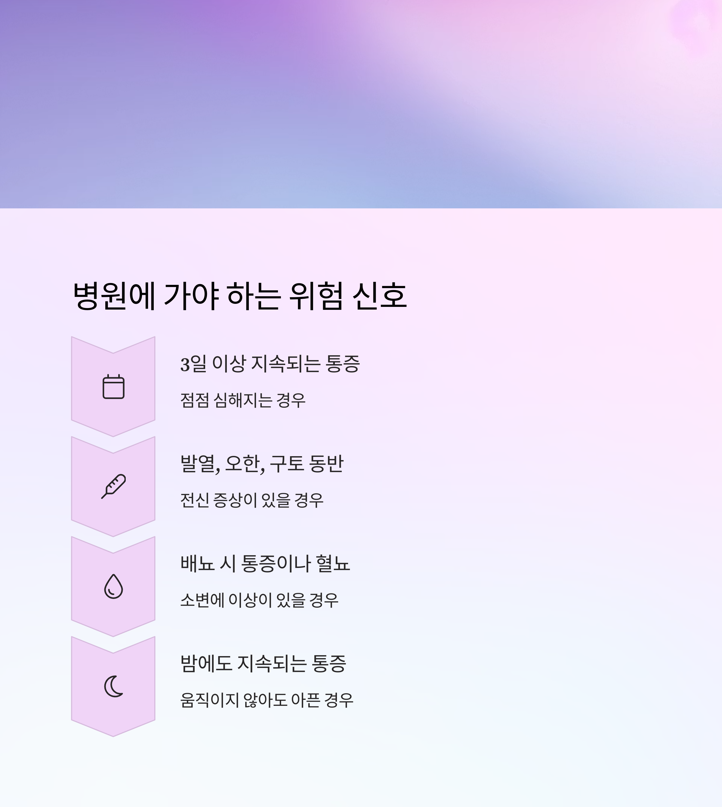 1. 통증이 3일 이상 지속되며 점점 심해지는 경우