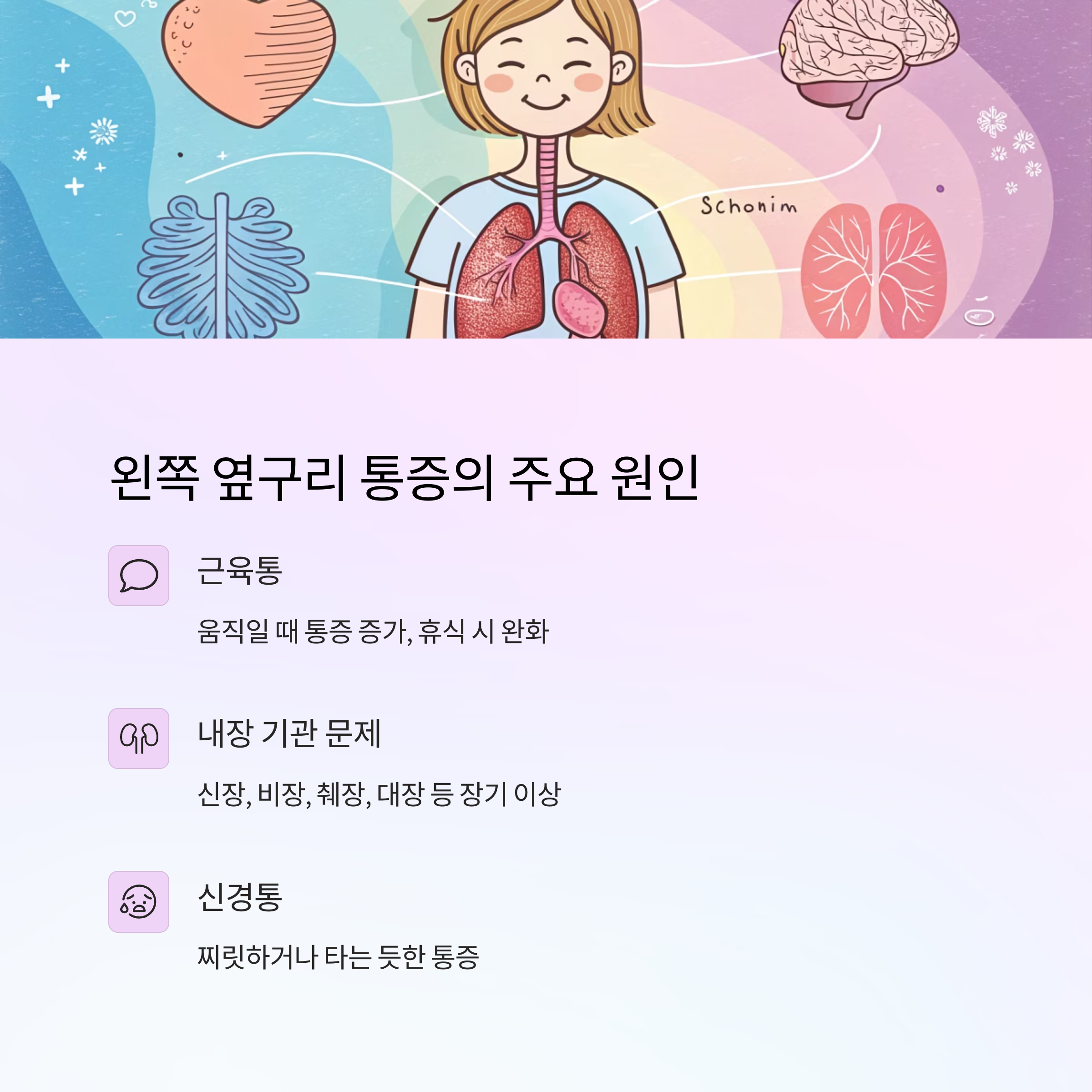 이제 왼쪽 옆구리 통증의 원인부터, 어떤 경우 병원을 꼭 가야 하는지까지 하나씩 자세히 알려줄게요! 🤓