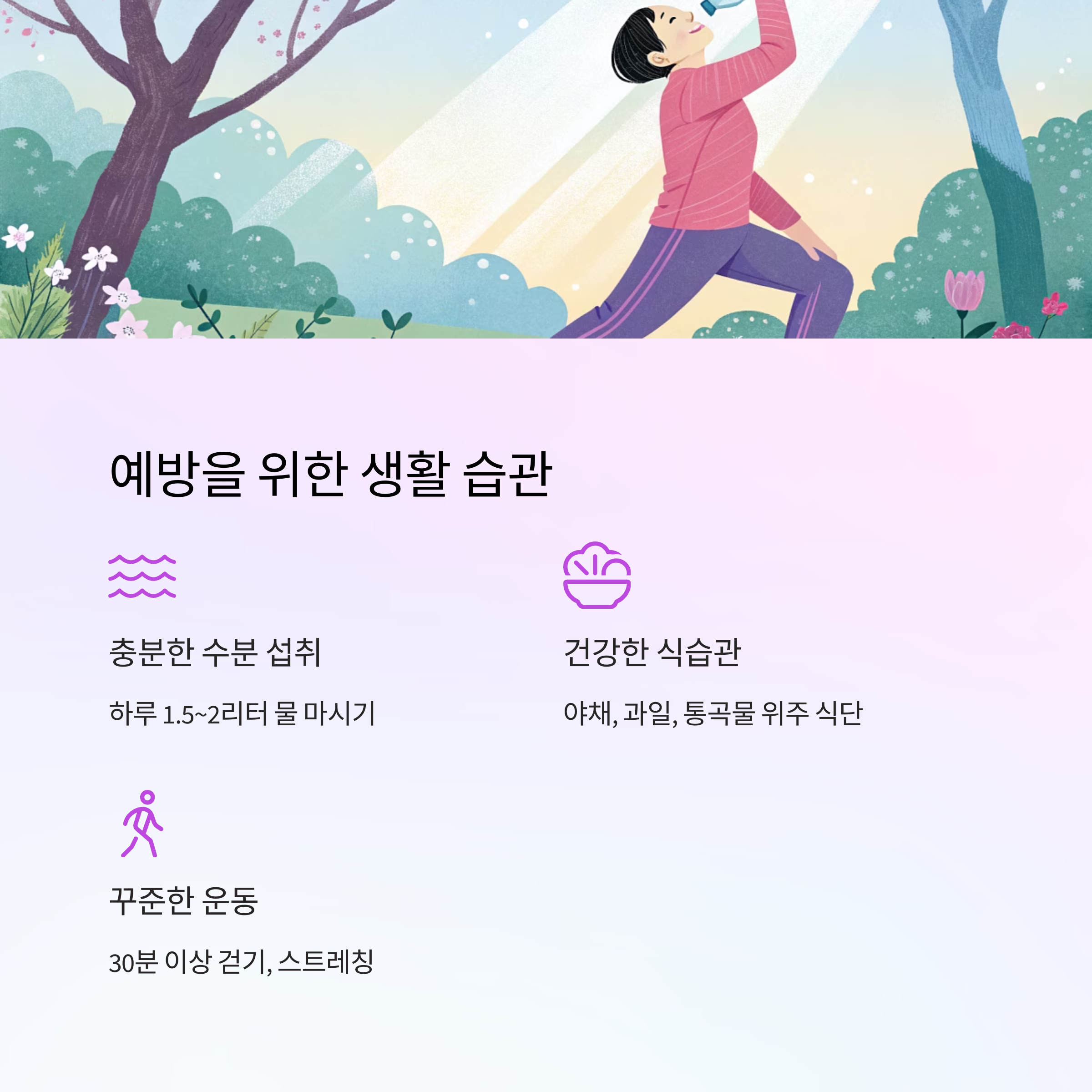 작은 습관 하나하나가 큰 질병을 막는 힘이 돼요. 매일의 루틴에 건강을 지키는 행동 하나씩 추가해보는 것, 어렵지 않아요! ☺