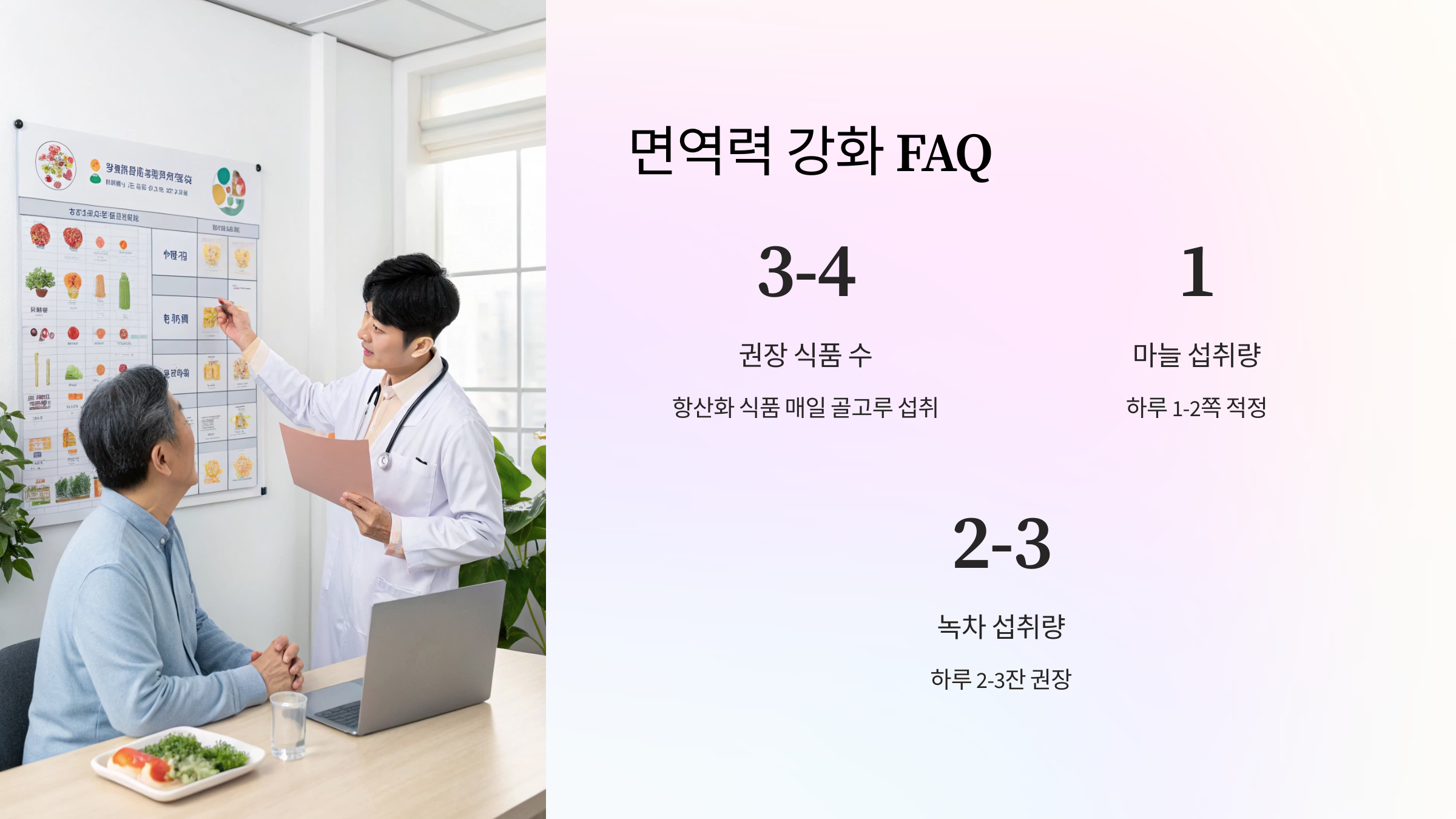 Q2. 면역력을 높이는 데 하루에 먹어야 할 식품은 몇 가지가 적절한가요?