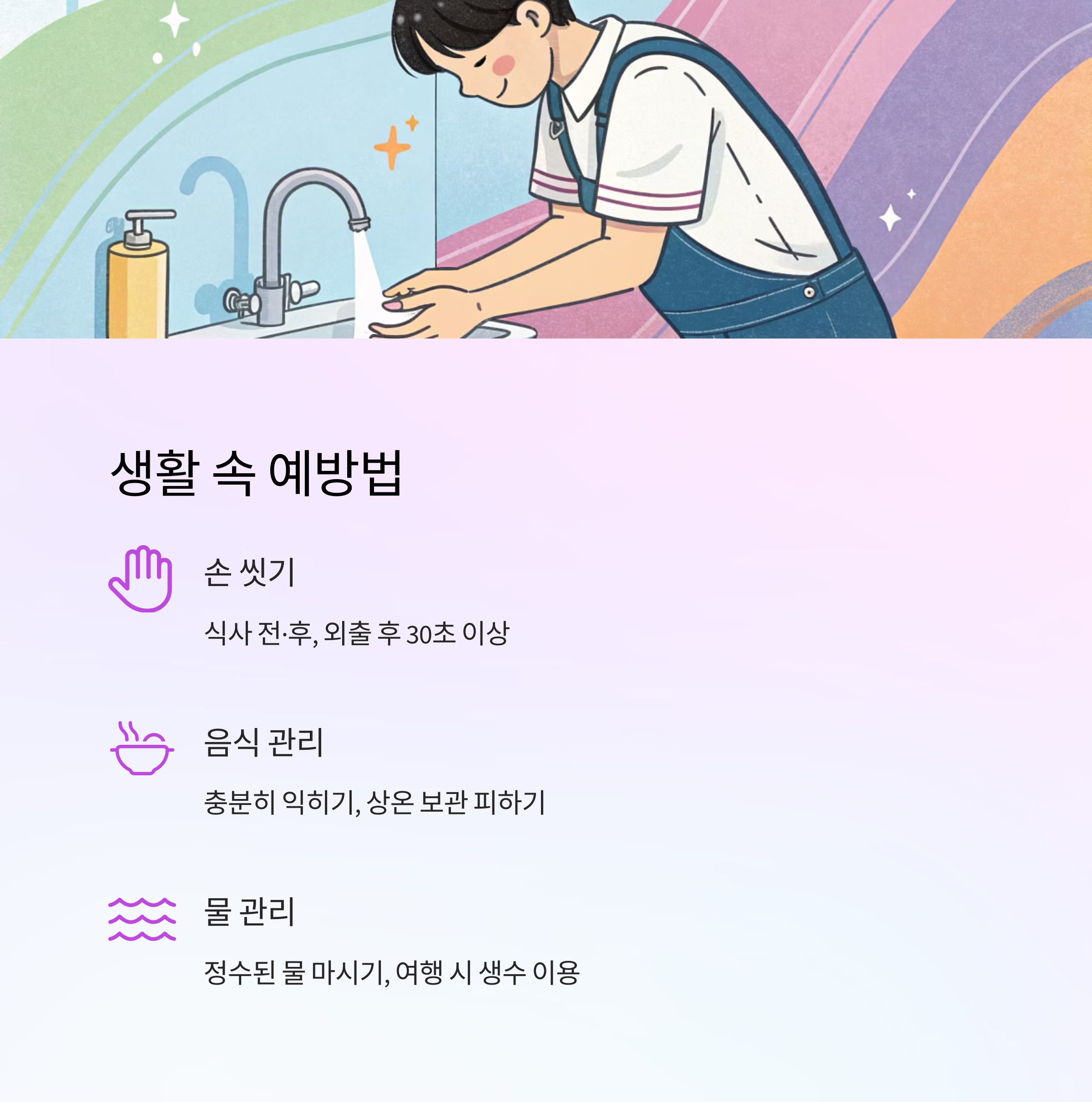 이렇게 생활 속에서 실천할 수 있는 간단한 습관만 잘 지켜도 장염의 위험을 크게 줄일 수 있어요. 특히 어린이와 노약자는 면역력이 약하므로 가족 모두가 함께 신경 써야 해요.