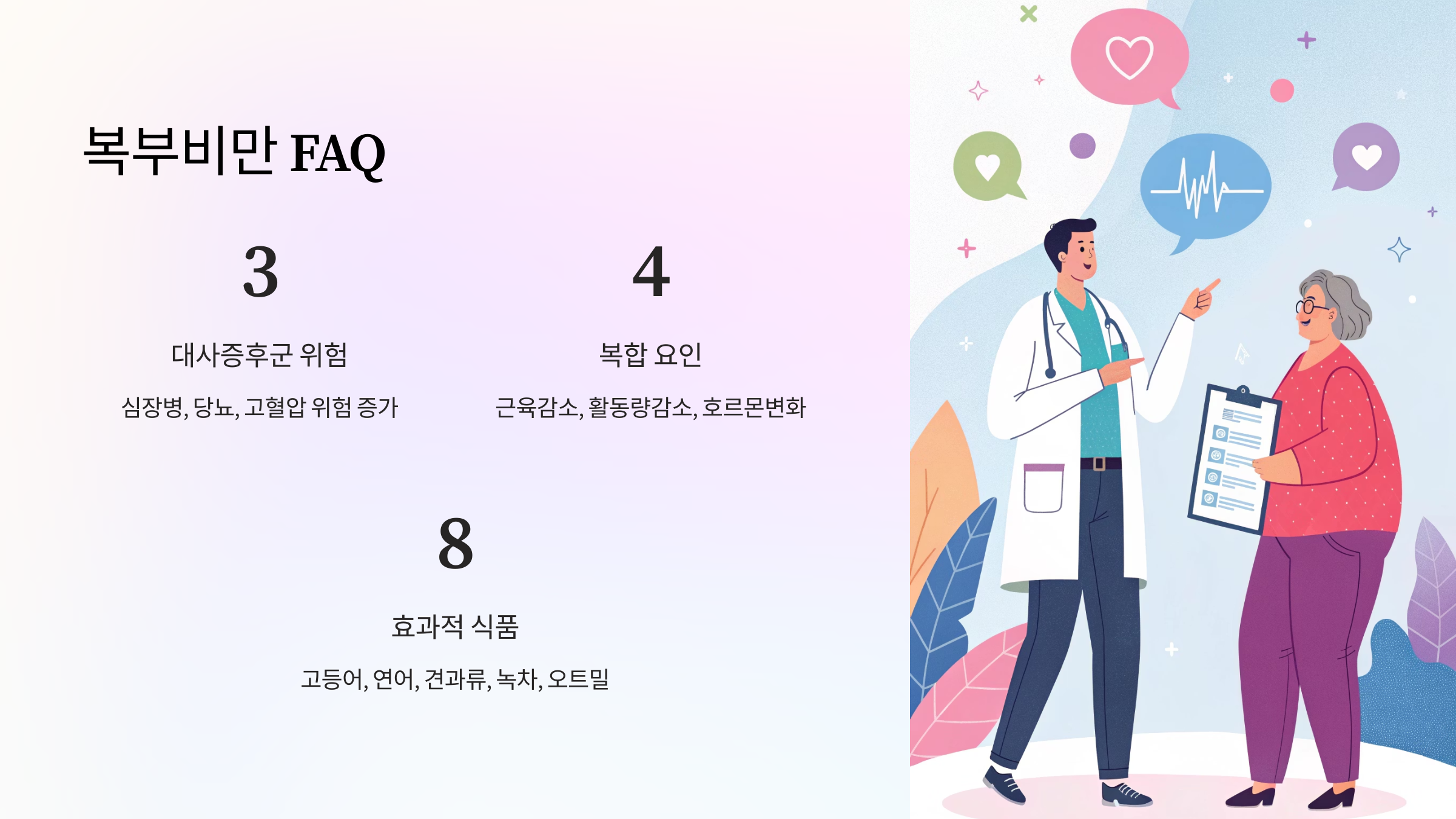 A1. 심장병, 당뇨, 고혈압 등 대사증후군과 직결되는 위험이 높아져요.