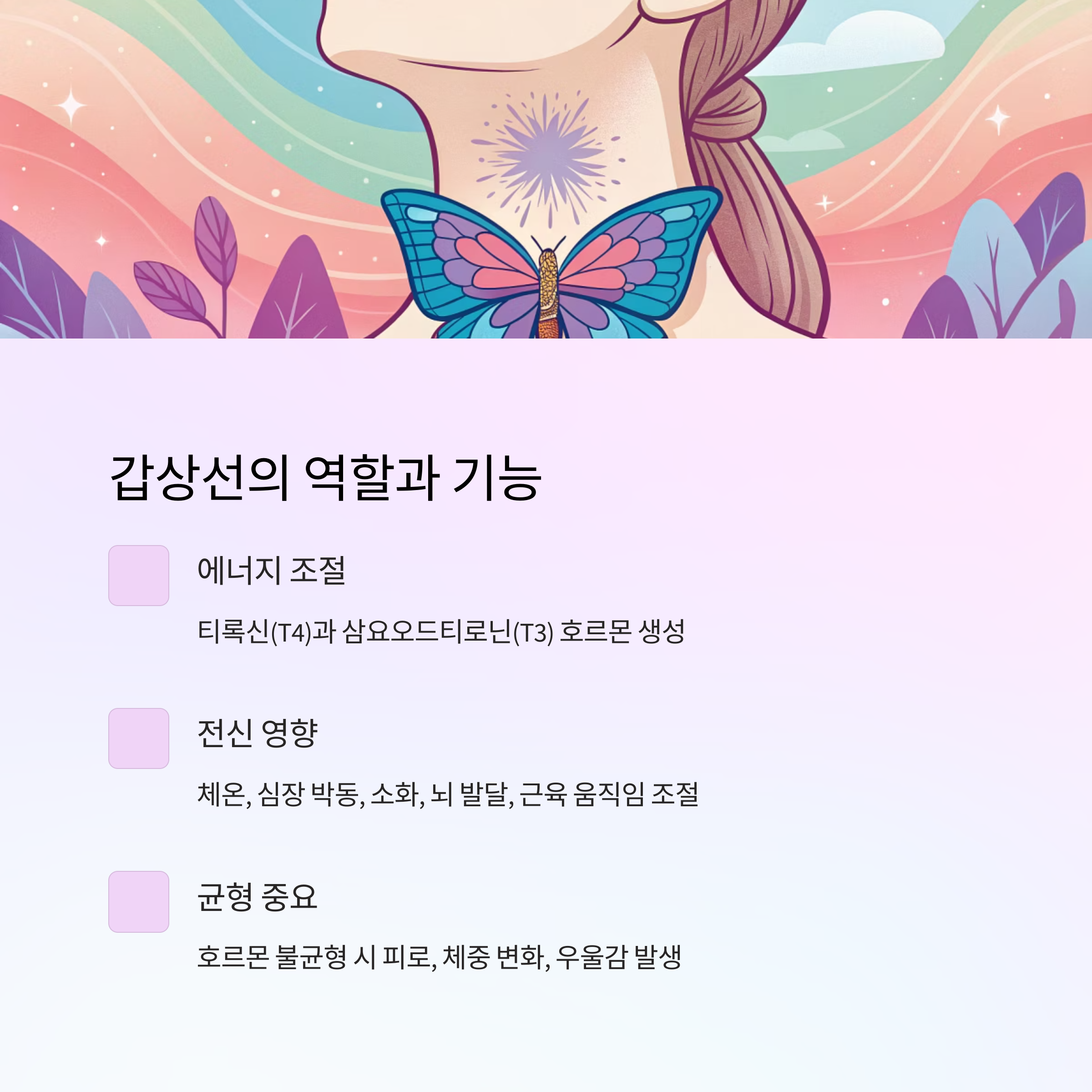 중년 여성이라면 꼭 체크해봐야 할 건강 항목 중 하나가 바로 갑상선이에요. 갑상선은 작은 기관이지만 신체의 대사를 조절하고 에너지 사용에 중요한 역할을 하기 때문에, 변화가 생기면 전신에 영향을 줄 수 있답니다.