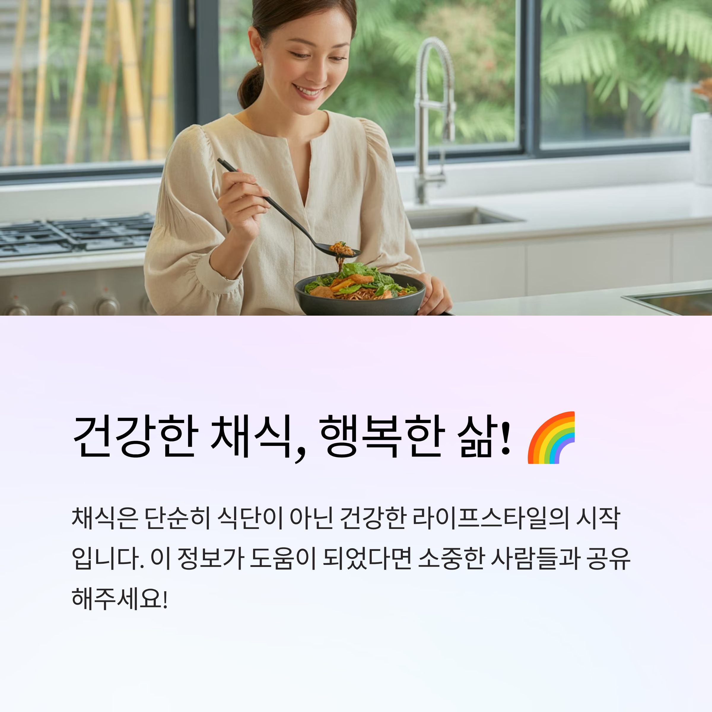 📌 참고사항: 본 글은 건강한 채식 유지에 대한 일반적인 정보를 제공하기 위한 콘텐츠예요. 개인의 건강 상태나 질병, 체질에 따라 섭취나 식단은 달라질 수 있으니, 의료 전문가 또는 영양사의 상담을 함께 받아보는 것을 추천해요. 😊