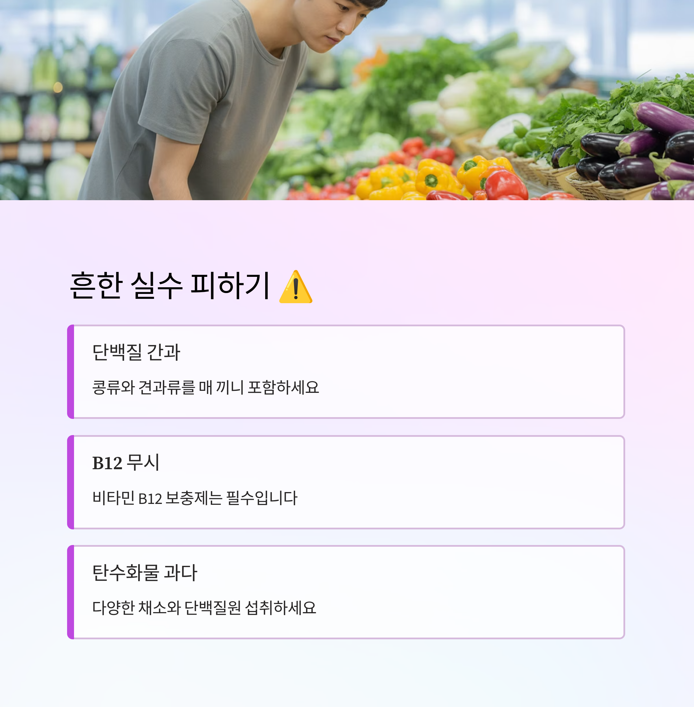 채식주의를 실천하면서 흔히 저지르기 쉬운 실수들이 있어요. 건강을 위해 시작한 채식이 오히려 몸에 부담이 되지 않도록, 대표적인 실수들을 미리 알아두면 큰 도움이 된답니다. 아래 내용을 꼭 체크해보세요.