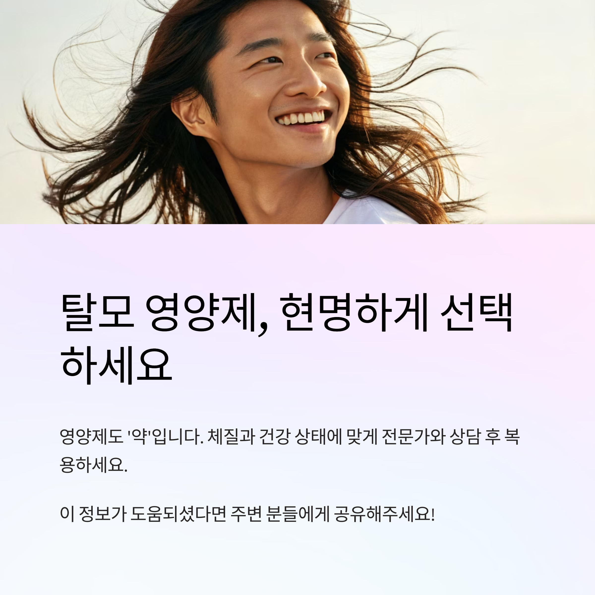 이처럼 특정 조건을 가진 사람들은 단순히 ‘탈모가 걱정돼서’라는 이유만으로 영양제를 복용하는 것은 위험할 수 있어요. 꼭 사전 상담과 검토를 거친 뒤에 안전하게 섭취하시길 바래요!