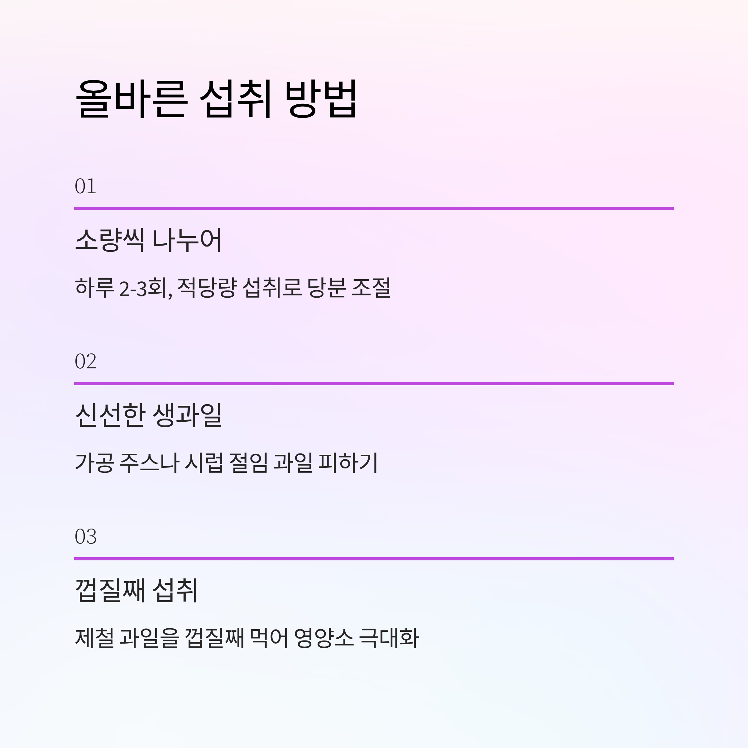 | 과일 | 주요 성분 | 효과 | 추천 섭취량 |