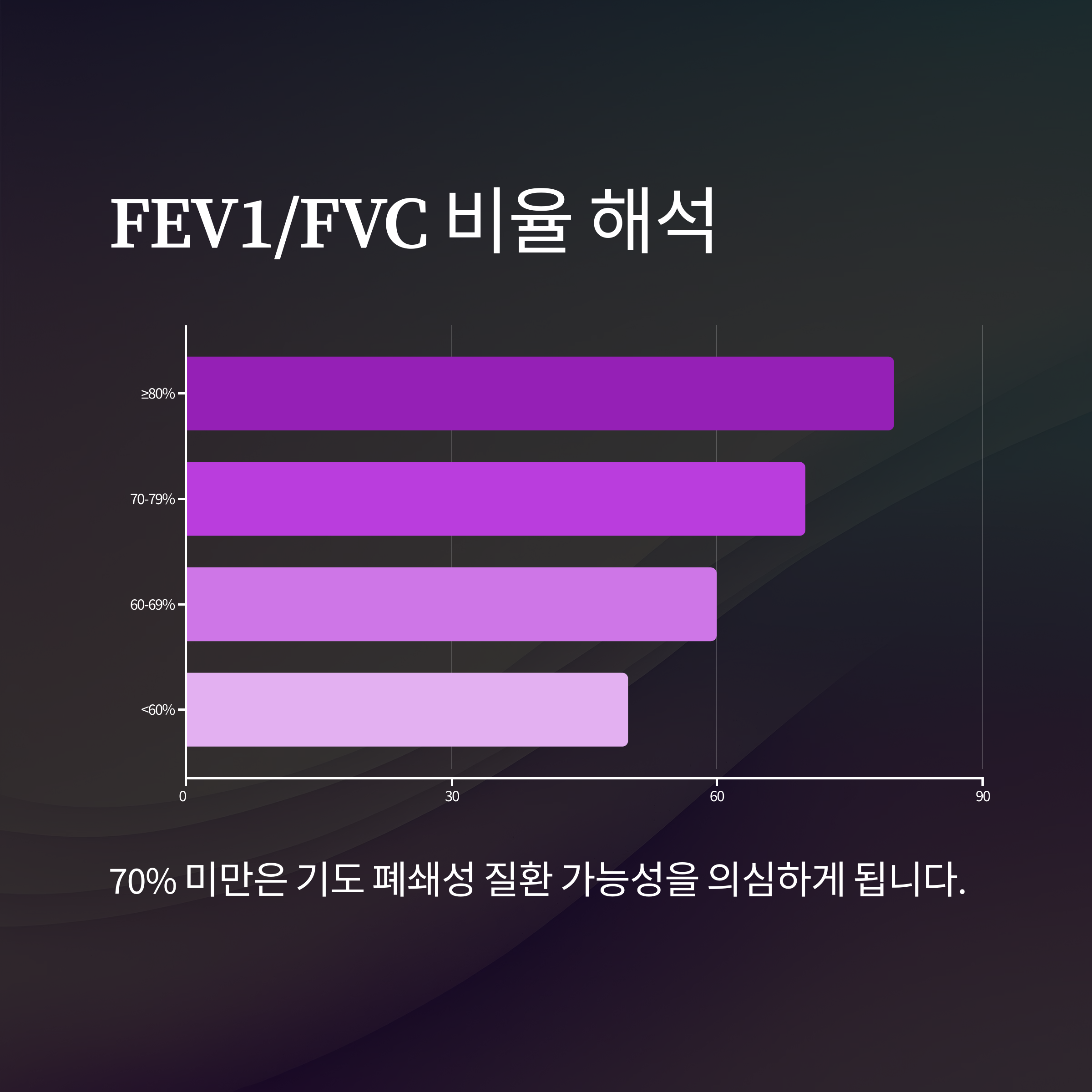 | 60~69% | 경도 폐쇄성 장애 | 초기 COPD, 천식 |