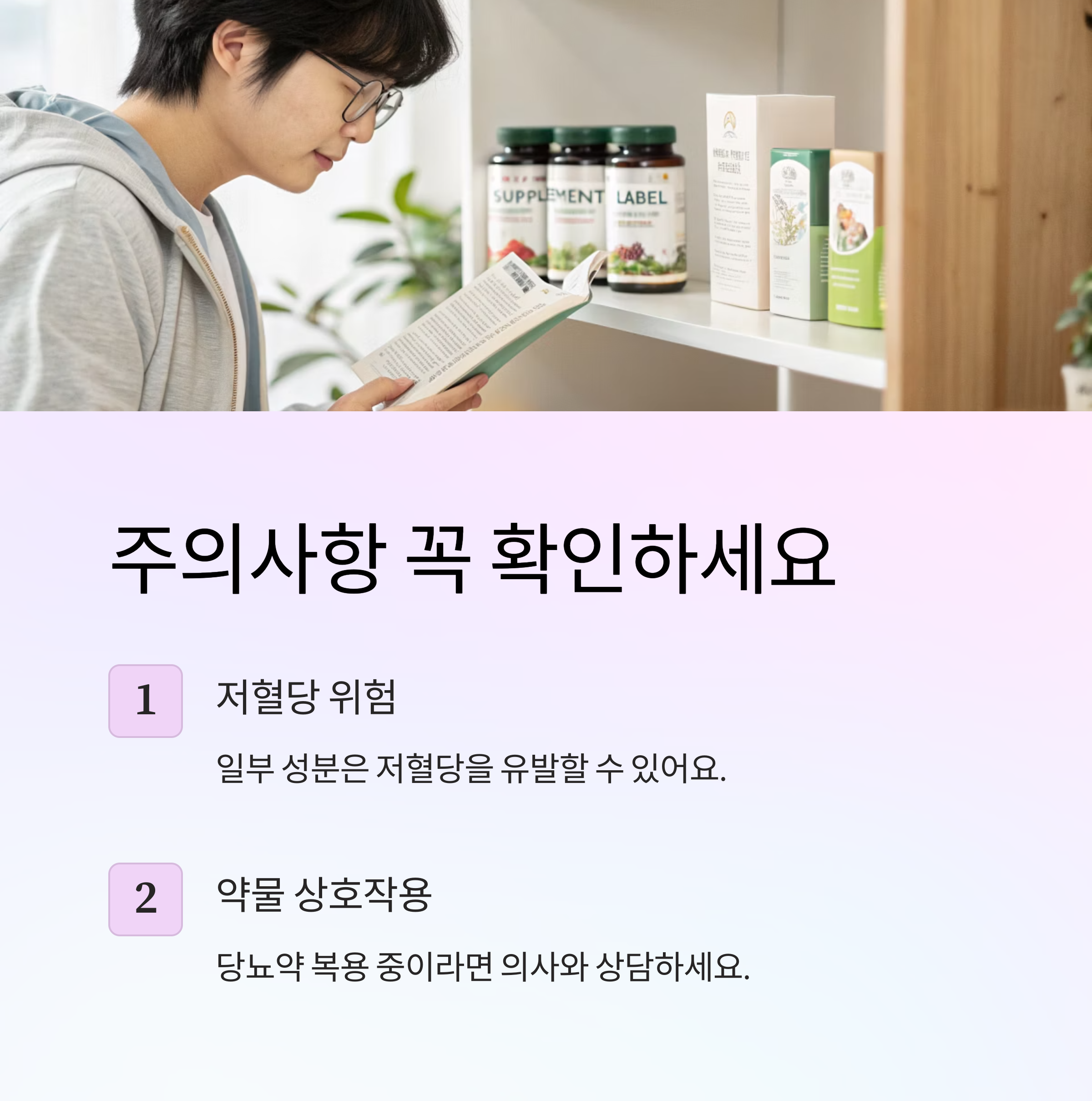 영양제라고 해서 무조건 안전하다고 생각하면 안 돼요. 특히 혈당에 관여하는 성분들은 체내 대사에 영향을 주기 때문에 섭취 시 주의가 필요해요. 예를 들어 알파리포산이나 크롬은 저혈당을 유발할 수 있어요. 식사를 거르거나 공복 상태에서 무리하게 복용하면 어지럼증이나 피로감을 느낄 수 있답니다.