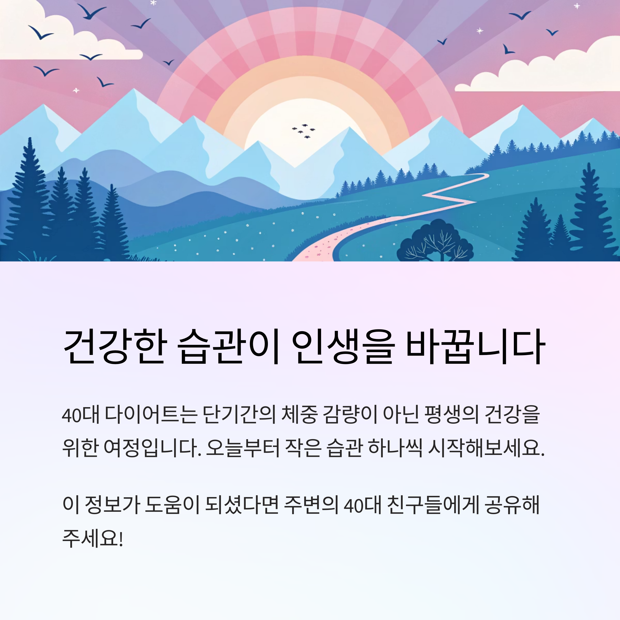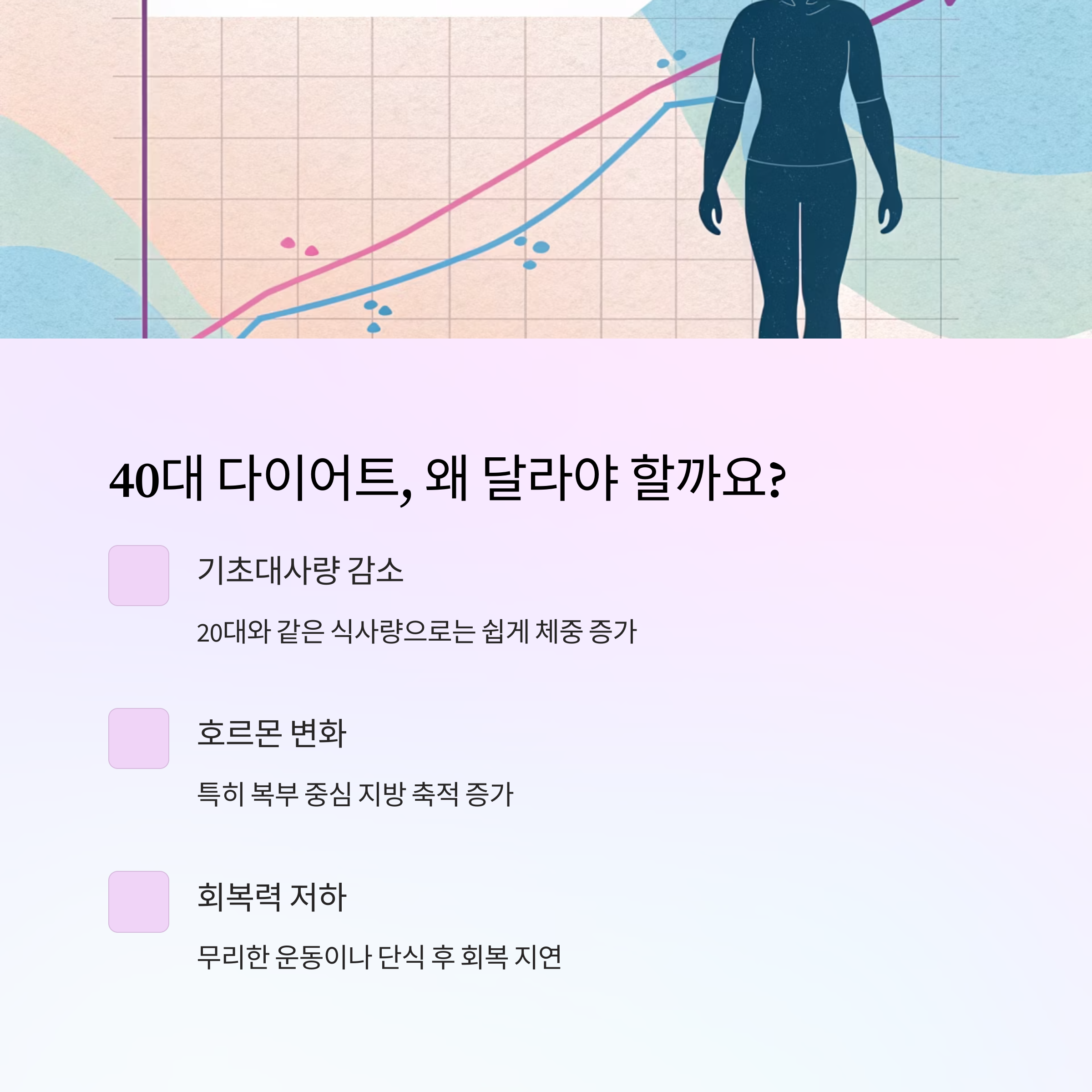 40대가 되면 체내 대사율이 급격히 감소하고, 호르몬 변화와 함께 근육량이 줄어들기 쉬워요. 이 시기의 다이어트는 단순한 체중 감량이 아니라 건강한 몸과 마음을 유지하는 데 더 초점이 맞춰져야 해요. 특히 무리한 절식이나 유행 다이어트는 오히려 건강을 해칠 수 있어요.