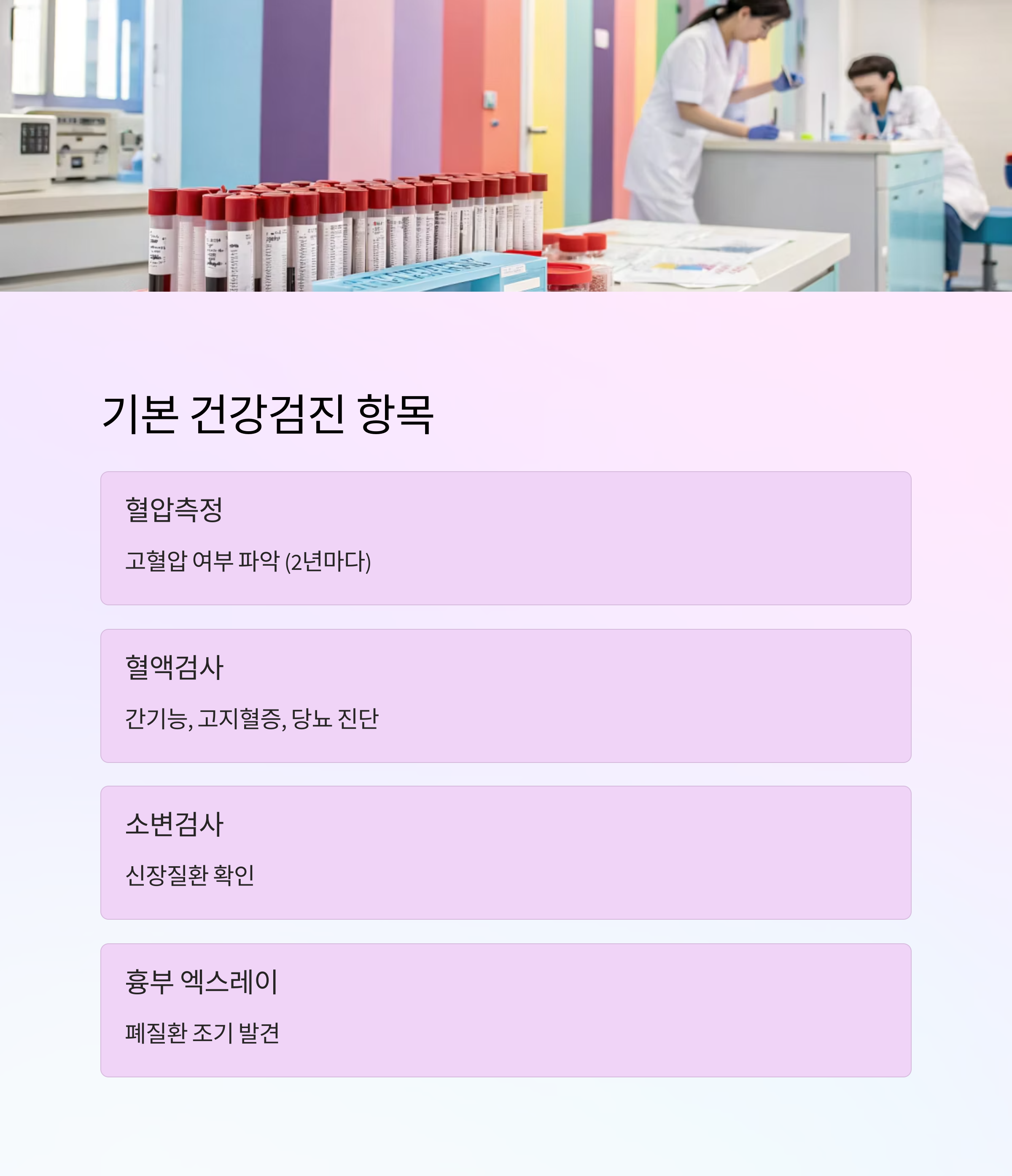 기본 검진 항목을 정기적으로 받는 것은 '자기 몸을 읽는 습관'을 기르는 가장 좋은 방법이에요. 체중, 혈압, 혈당 같은 숫자에 민감해지는 순간, 내 건강을 지키는 첫걸음이 될 수 있어요. 🧑⚕️