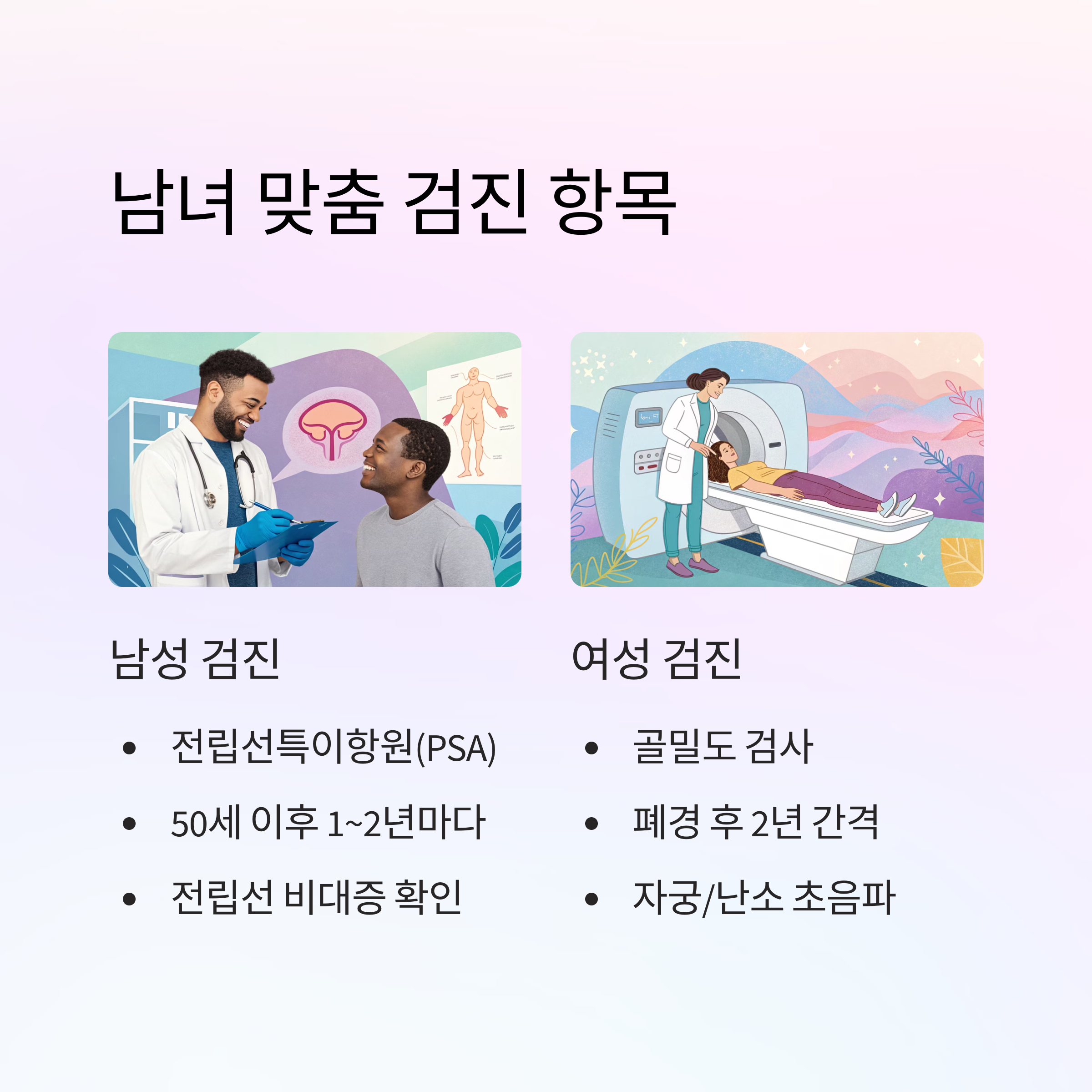 👩⚕️ 남녀별 맞춤 검진 항목 요약