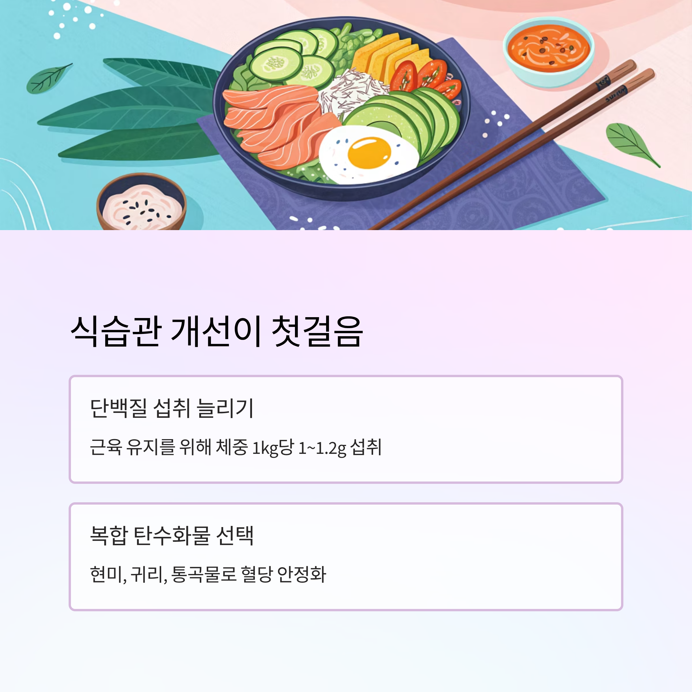 A1. 식습관 개선과 꾸준한 운동이 가장 중요해요. 특히 단백질 섭취를 늘리고, 유산소와 근력 운동을 병행하는 것이 핵심입니다.