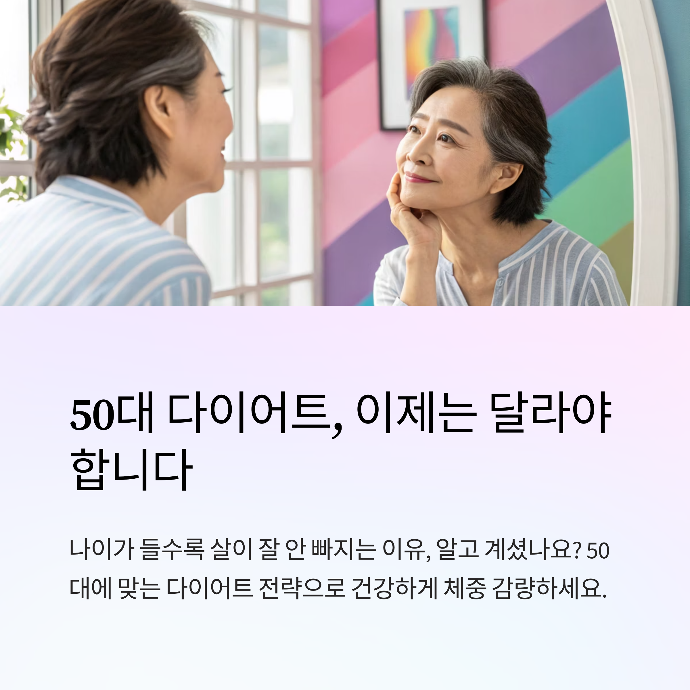 이처럼 50대의 체중 증가에는 단순히 '많이 먹어서'가 아닌 다양한 생리적, 심리적 요인이 복합적으로 작용해요. 그렇기 때문에 맞춤형 다이어트 접근이 필수예요!