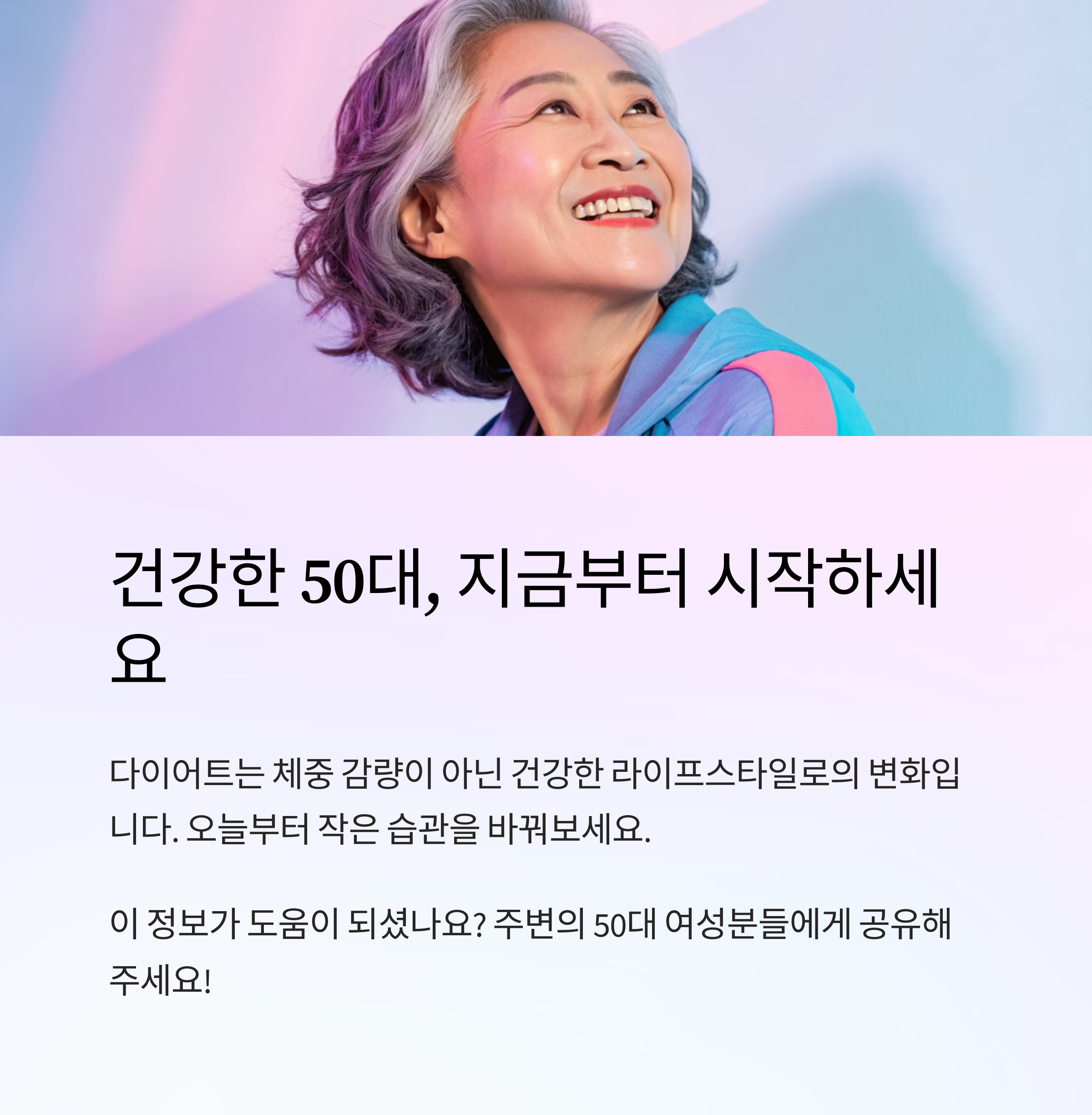 50대 여성 다이어트는 단순히 체중 감량만을 목표로 하지 않아요. 건강을 유지하고 삶의 질을 높이기 위한 전반적인 라이프스타일 변화가 핵심이에요. 무리한 식이요법이나 단기 다이어트보다 지속 가능하고 안정적인 방법을 통해 몸과 마음 모두 건강해지는 게 진짜 목표예요!